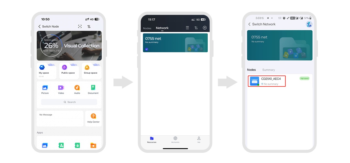 Click the CD2510_XXXX / CD3510_XXXX device nodes to enter the APP homepage. You can enjoy all functions and enjoy your private cloud storage.