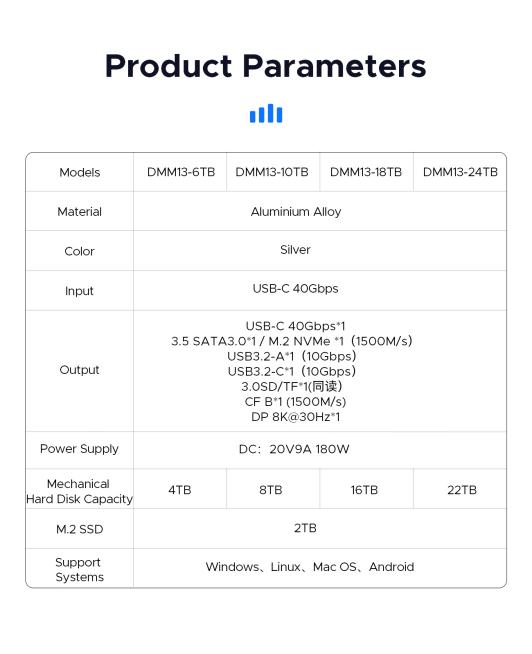 Data Matrix Elite 2Big has 4 total capacity options - 6TB/ 10TB/ 18TB/ 24TB. The built-in 2TB M.2 SSD (at the speed of up to 1500MB/s) provides a real-time hot-data processing zone and enables editing, rendering, 3D interaction, AI training, and program loading, eliminating the need to copy files onto your computer.