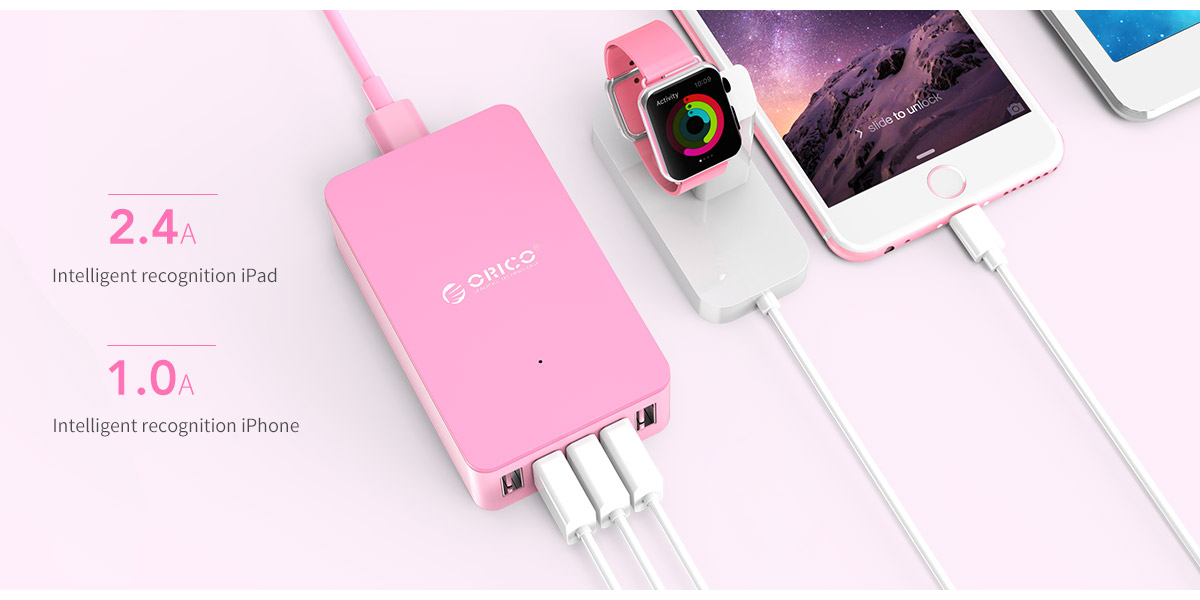 Charges any combination of five USB devices simultaneously, high electric energy conversion rate reaches up to 88%,