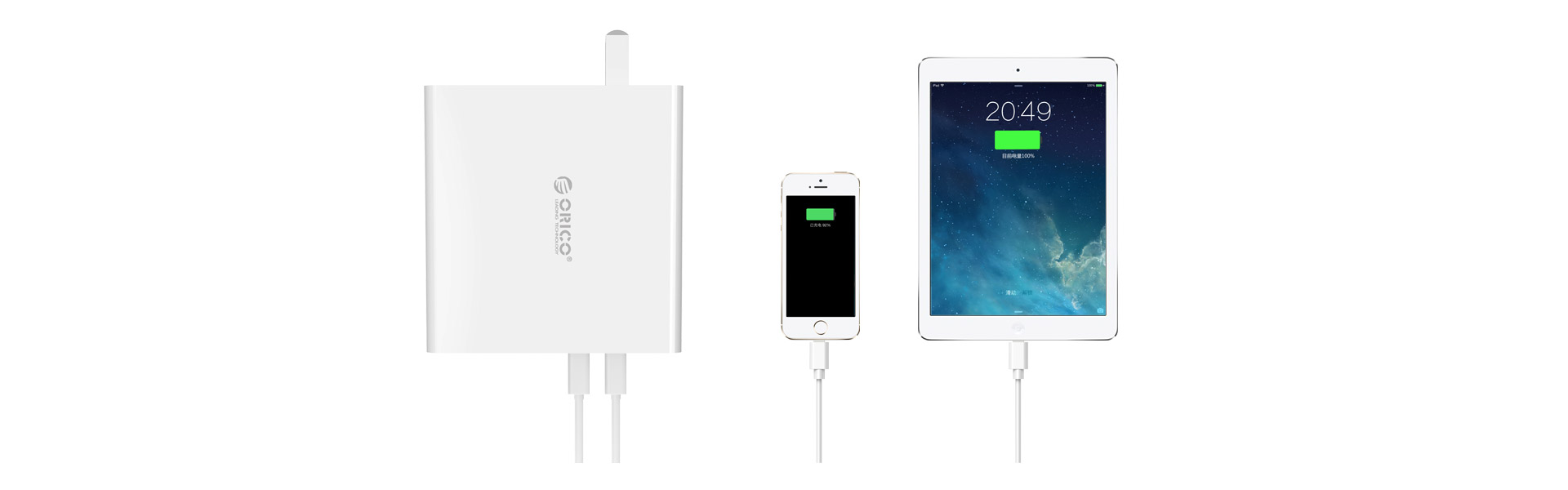 Integrated with intelligent detection IC that enables each port to detect your device and deliver ideal current up to 2.4A, 6A overall.
