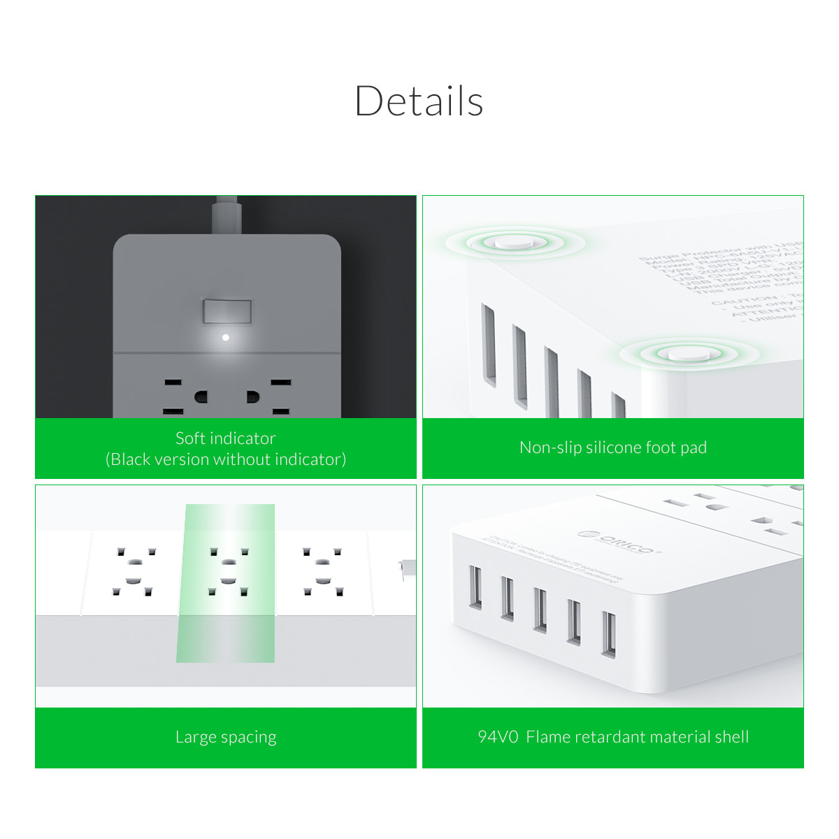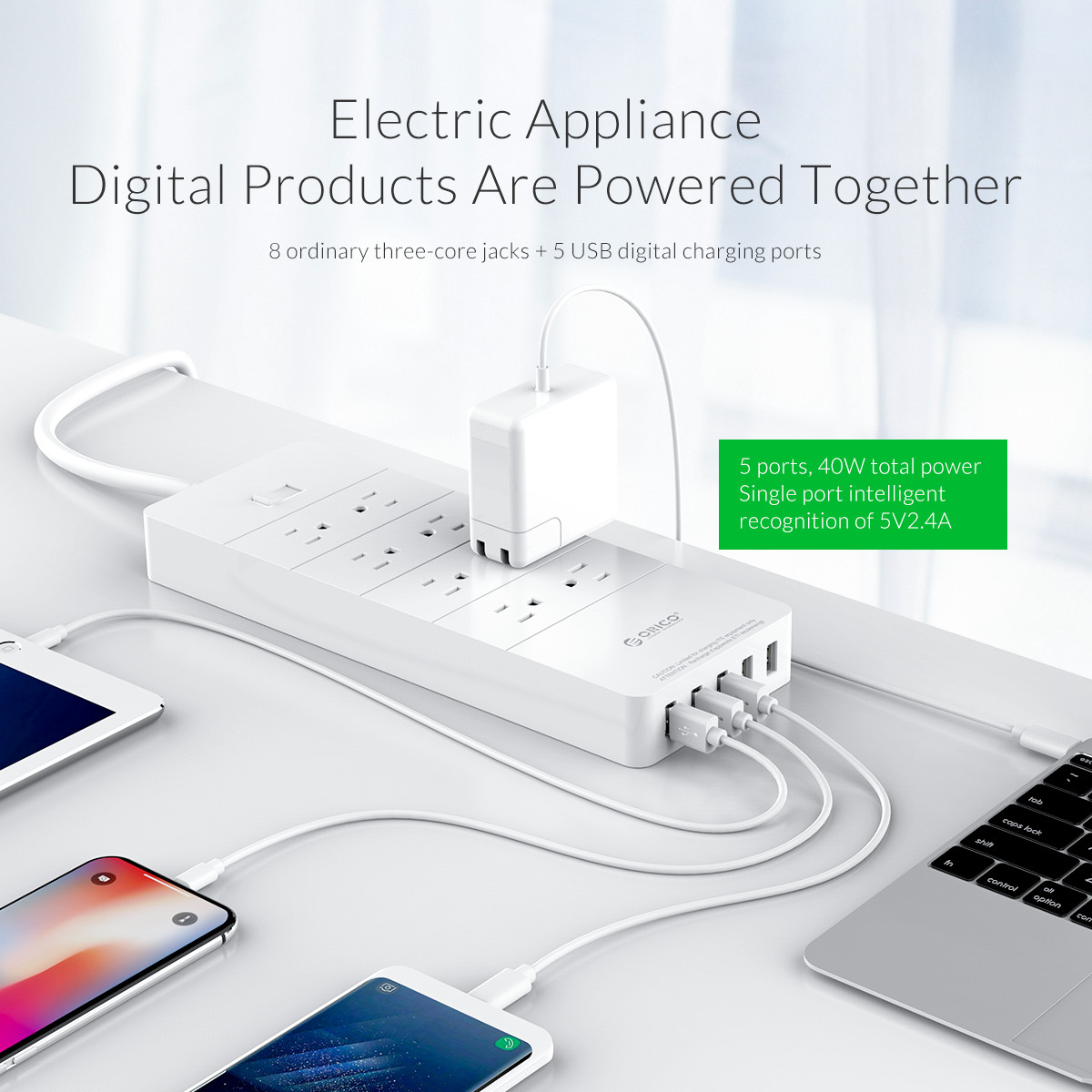 8 AC Outlet Surge Protector with 5 USB Charging Port