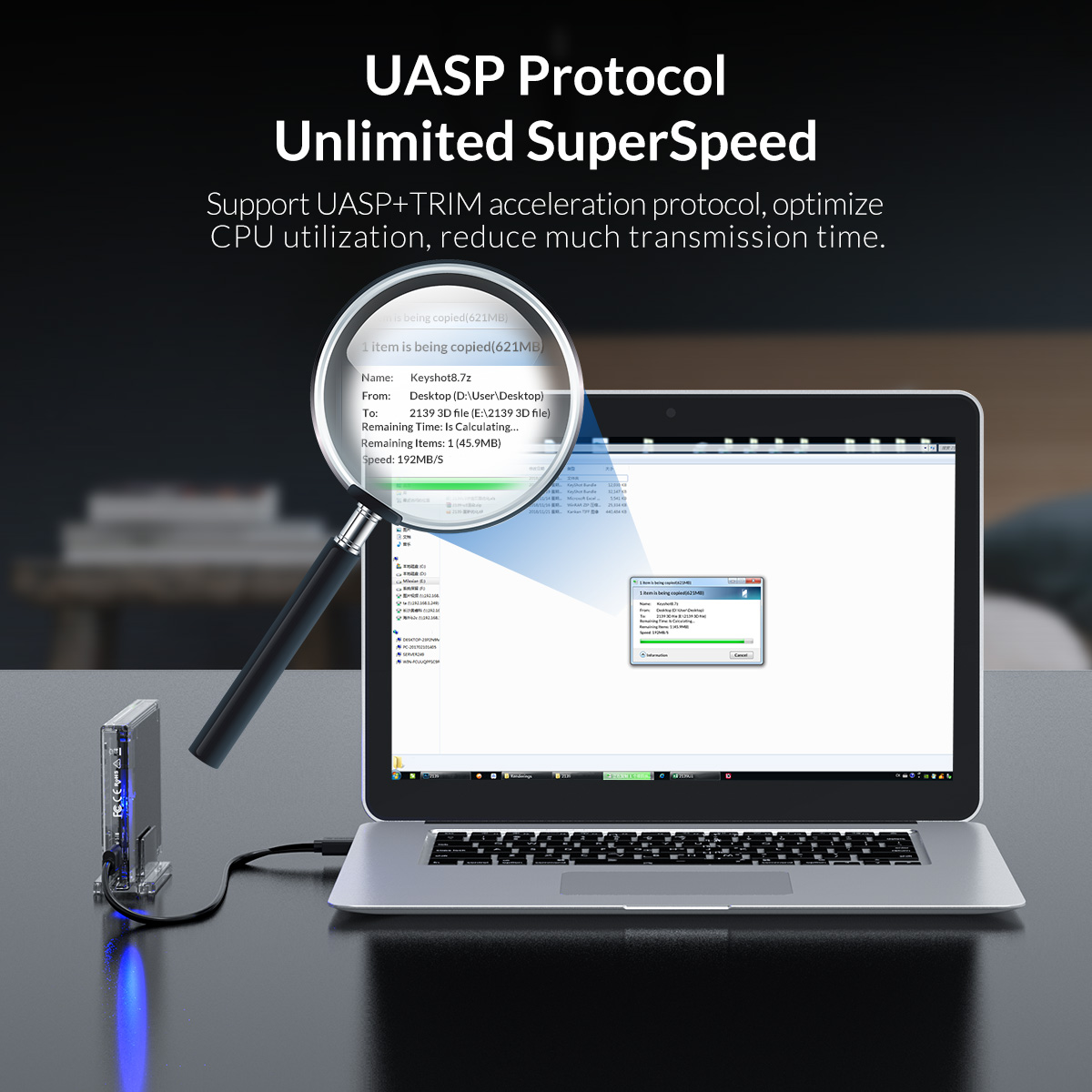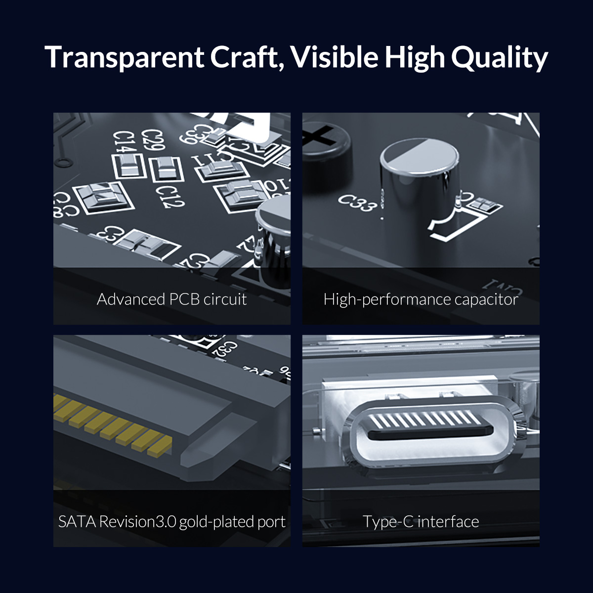 2.5 inch Transparent 10Gbps Hard Drive Enclosure with Stand