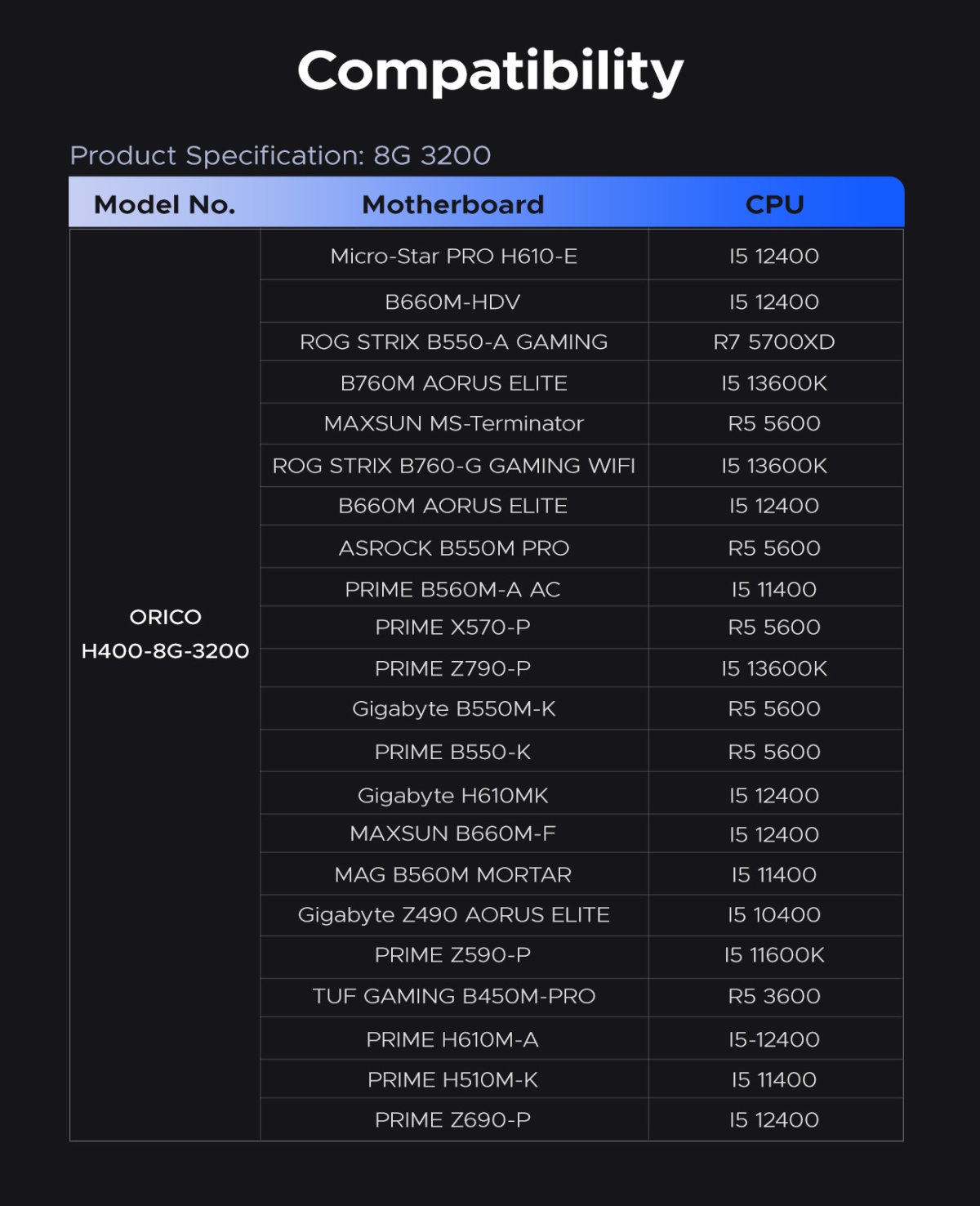 8/16G (8G*2), 16G/ 32G (16G*2),