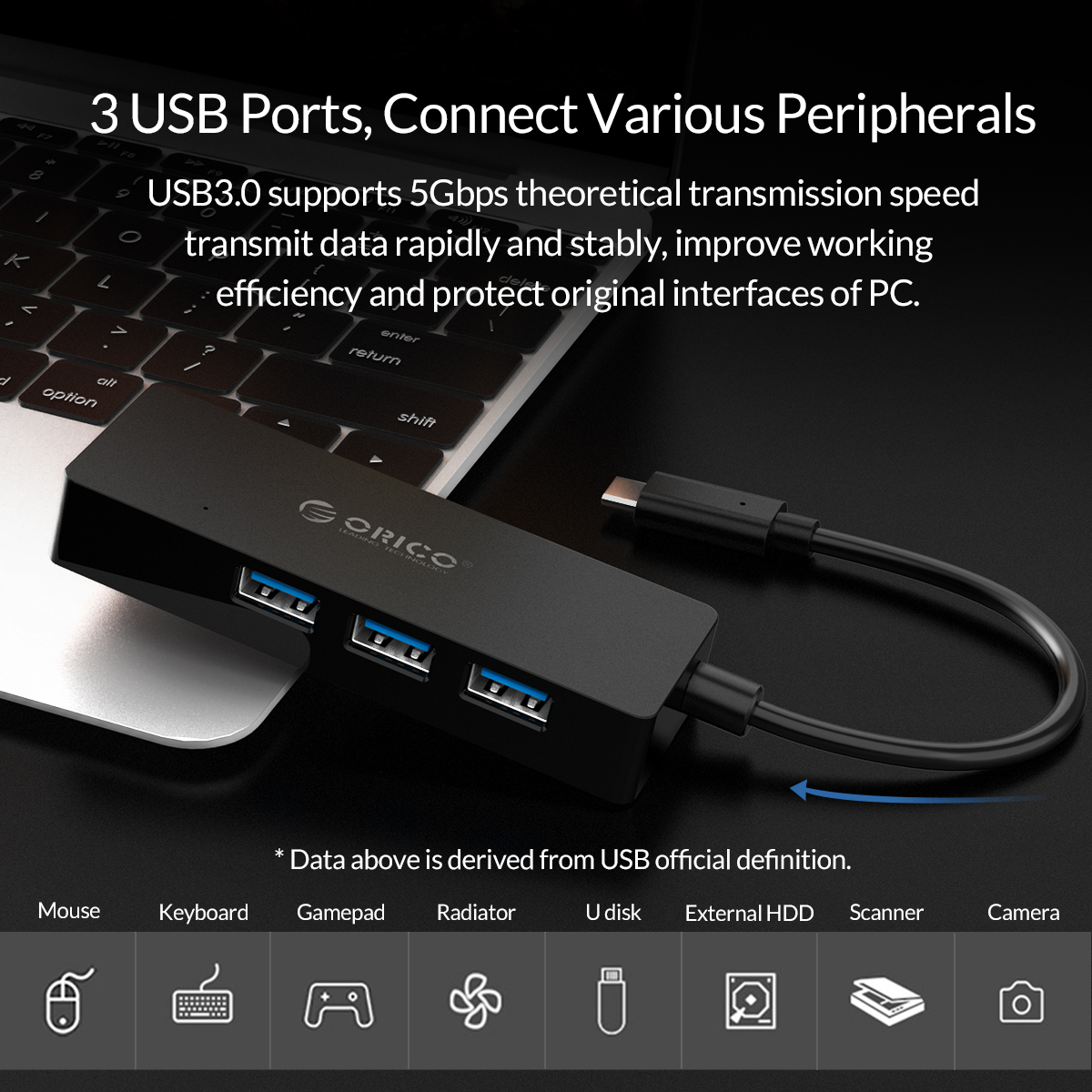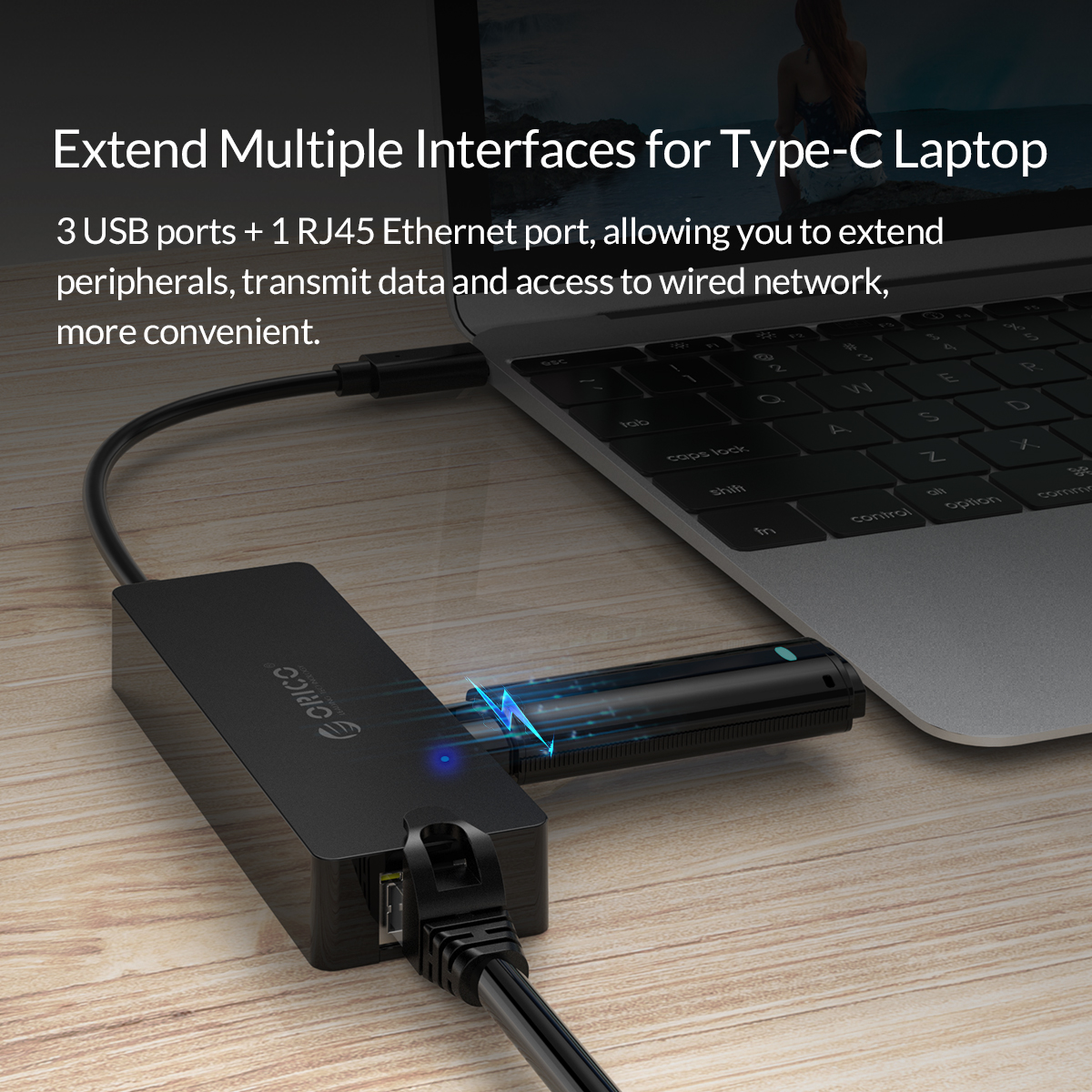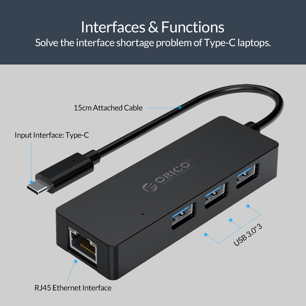 ORICO Type-C to USB3.0 + RJ45 Docking Station (CLH-3AR)