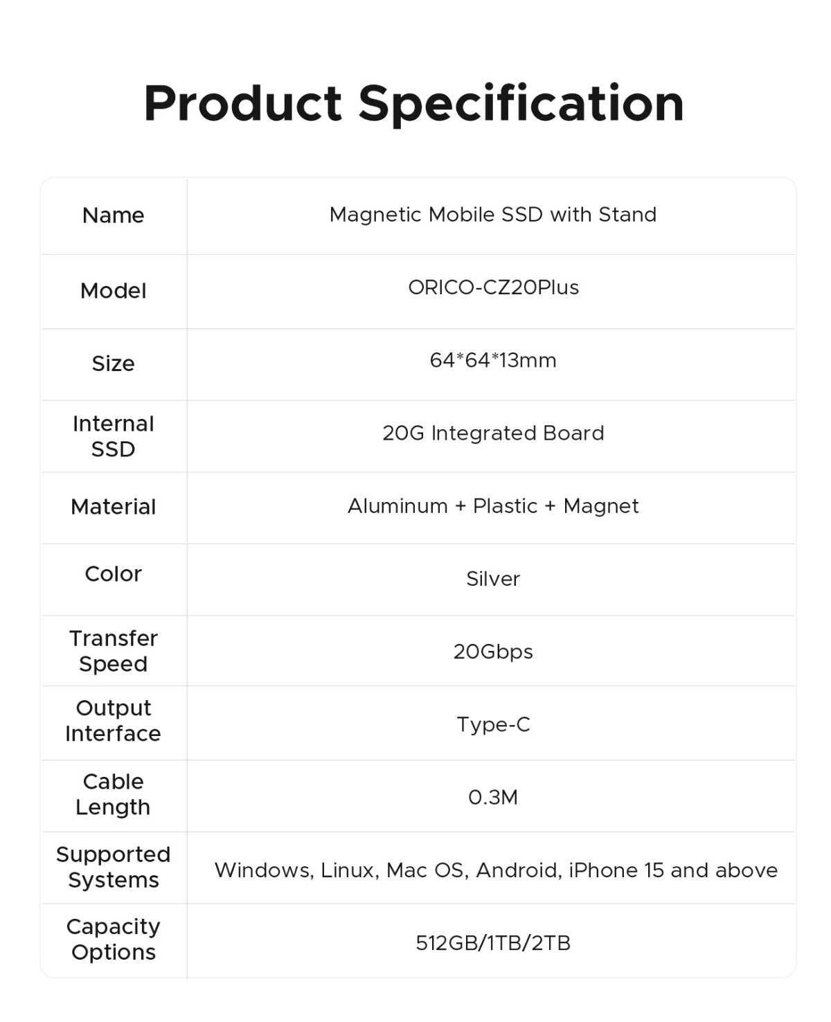 20Gbps Magnetic Portable SSD with Foldable Stand