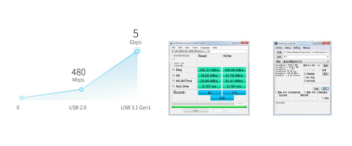 Adopts USB3.1 Gen2 to SATA3.0 solution, supports transfer rate of up to 10 Gbps (USB3.1 Gen2 Type-C cable is not included); Enclosed with USB3.1 Gen1 Type-C cable.
