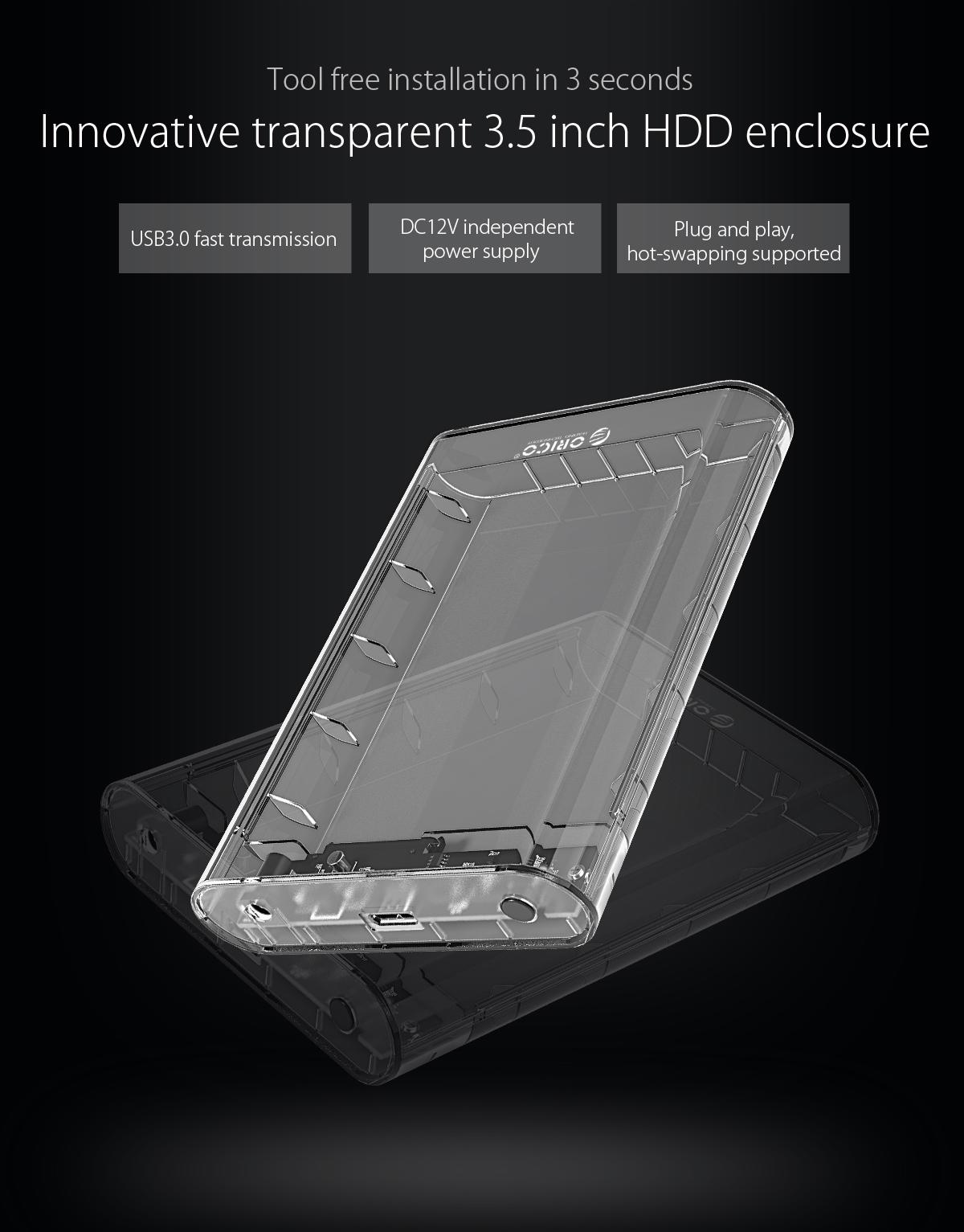 ORICO 3.5 inch Transparent USB3.0 External Hard Drive Enclosure