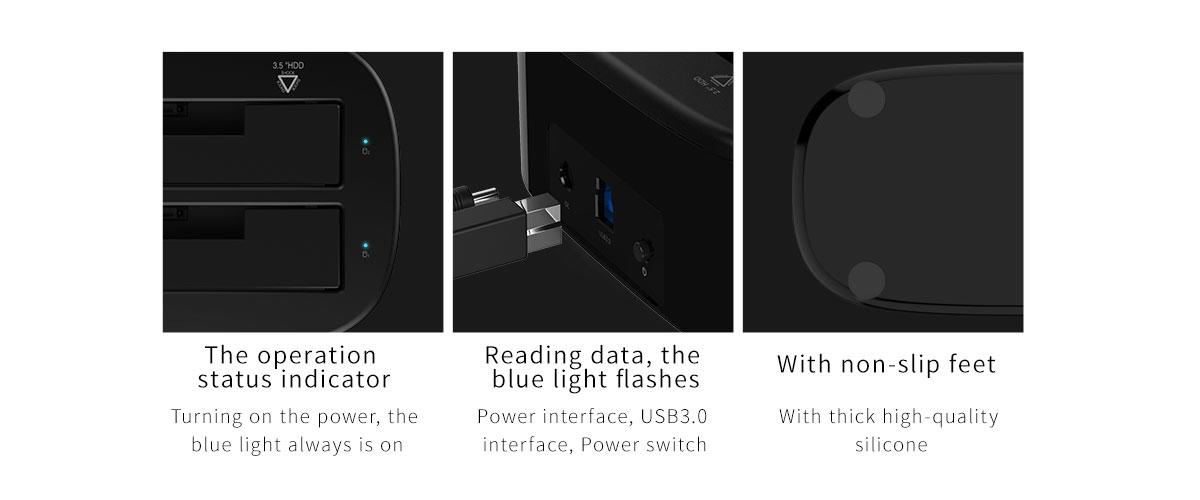 Both 2.5/3.5 inch HDD and SSD with SATA interface can be put in this enclosure, regardless of size or brand, plug and play.