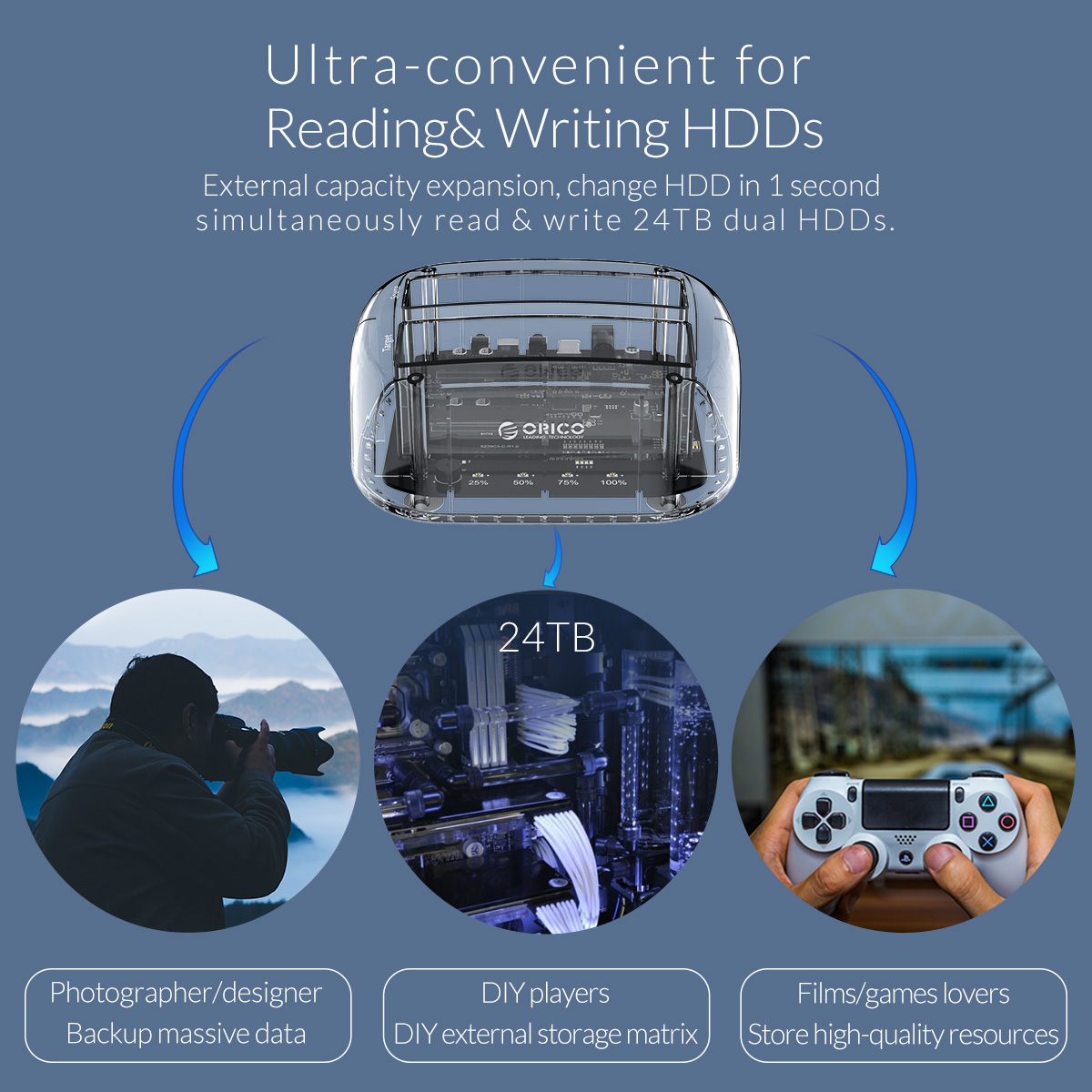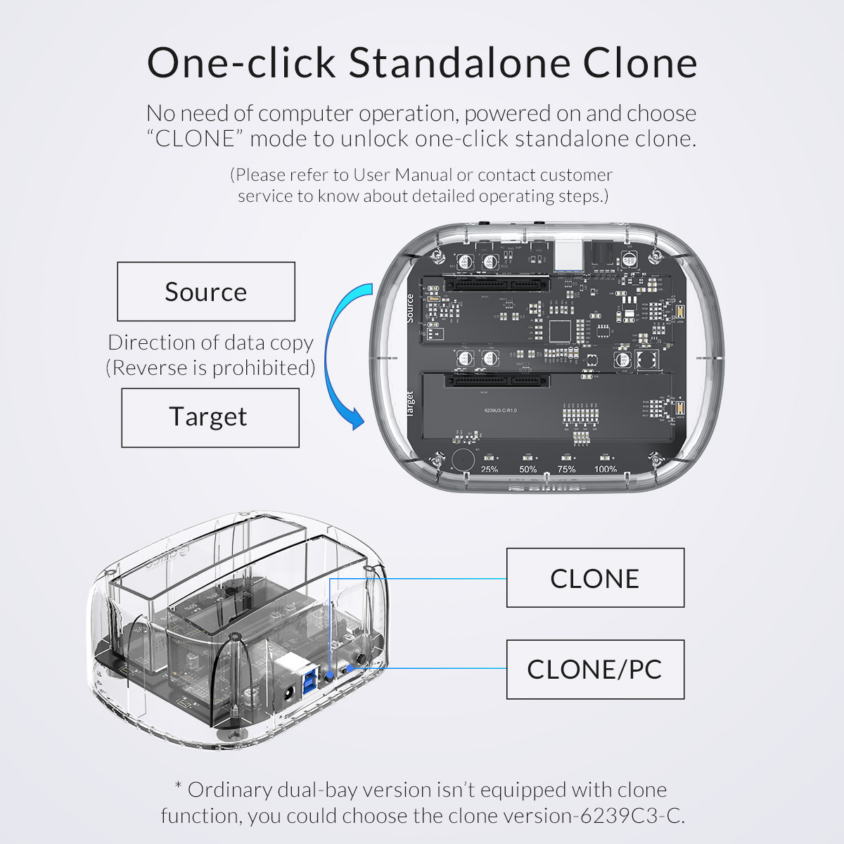 3.5/2.5inch 2 Bay Transparent USB3.0 Hard Drive Dock with Offline Clone Function