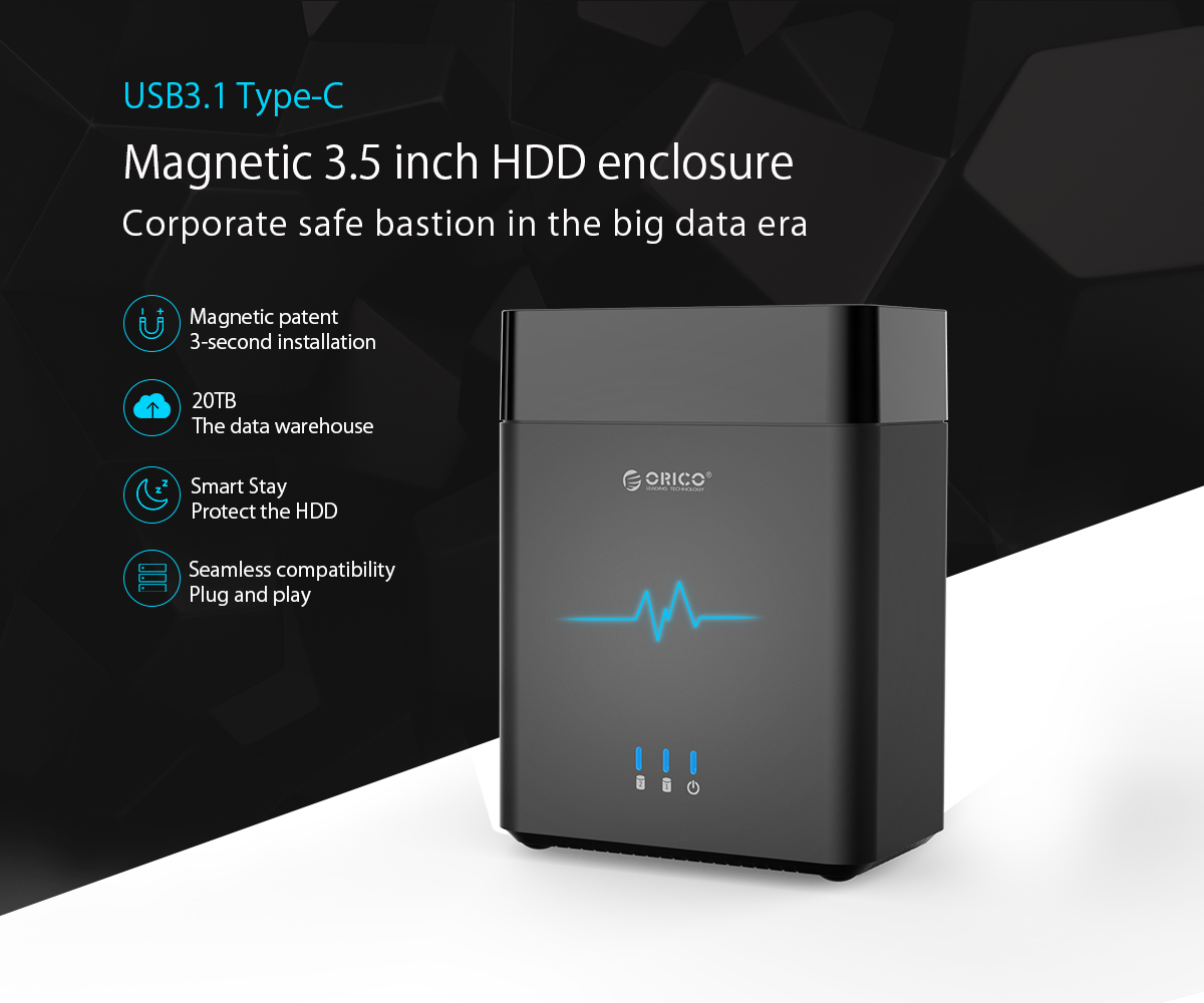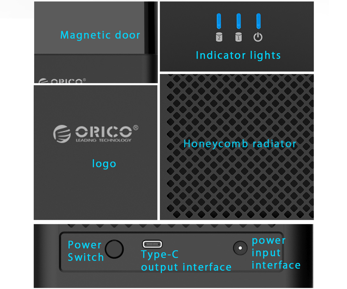 ORICO 3.5 inch 2 Bay Magnetic-type Type-C Hard Drive Enclosure
