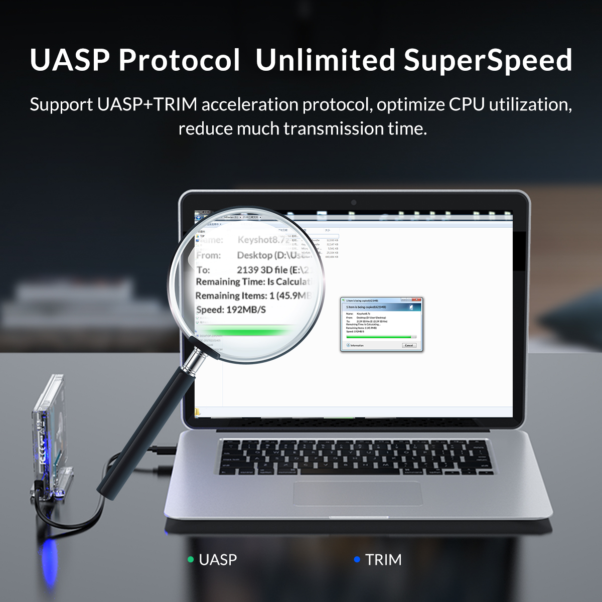 2.5 inch Transparent USB3.0 Hard Drive Enclosure with Stand