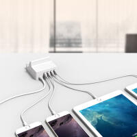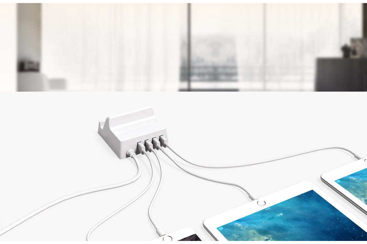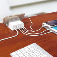 4-port USB charger pumps out 5V4A, 20W (5V2.4A for single port), which can charge 4 phones simultaneously, convenient for charging, tidy for desktop.
