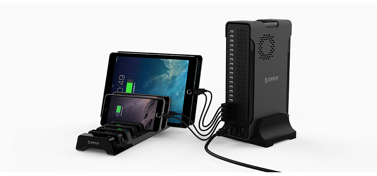 Enthusiast 20 ports USB charger, 240 total power, each port 5V2.4A full output, charging 20 tablets at once, convenient for usage in resturant, hotel, school, shopping mall, airport and etc.