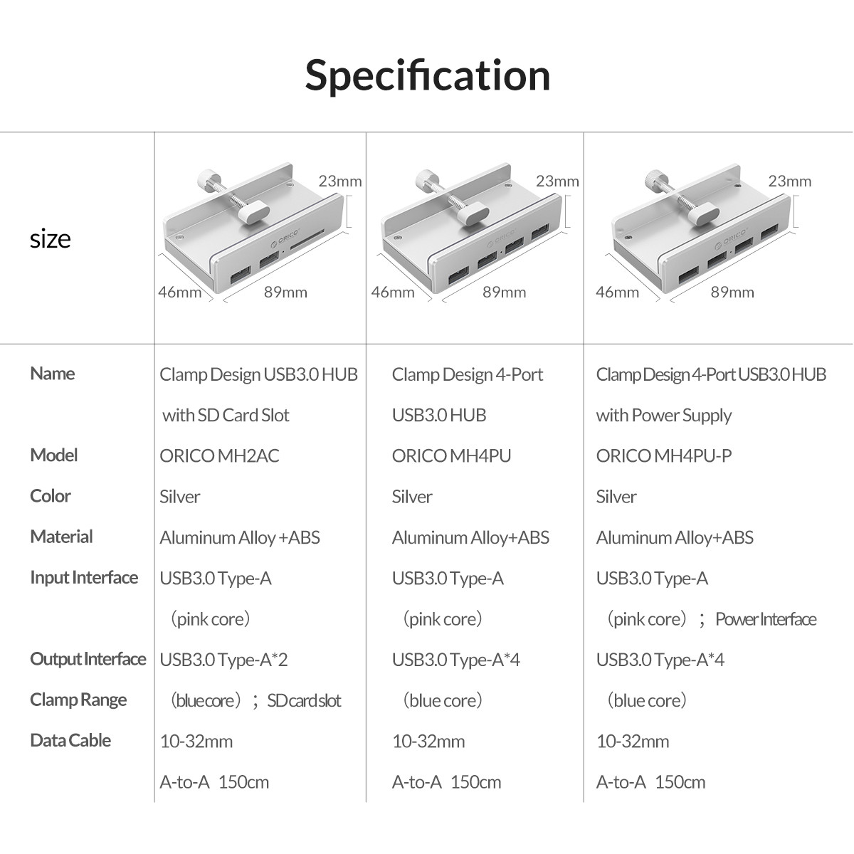Aluminum Alloy 4 Port USB3.0 Clip-type HUB