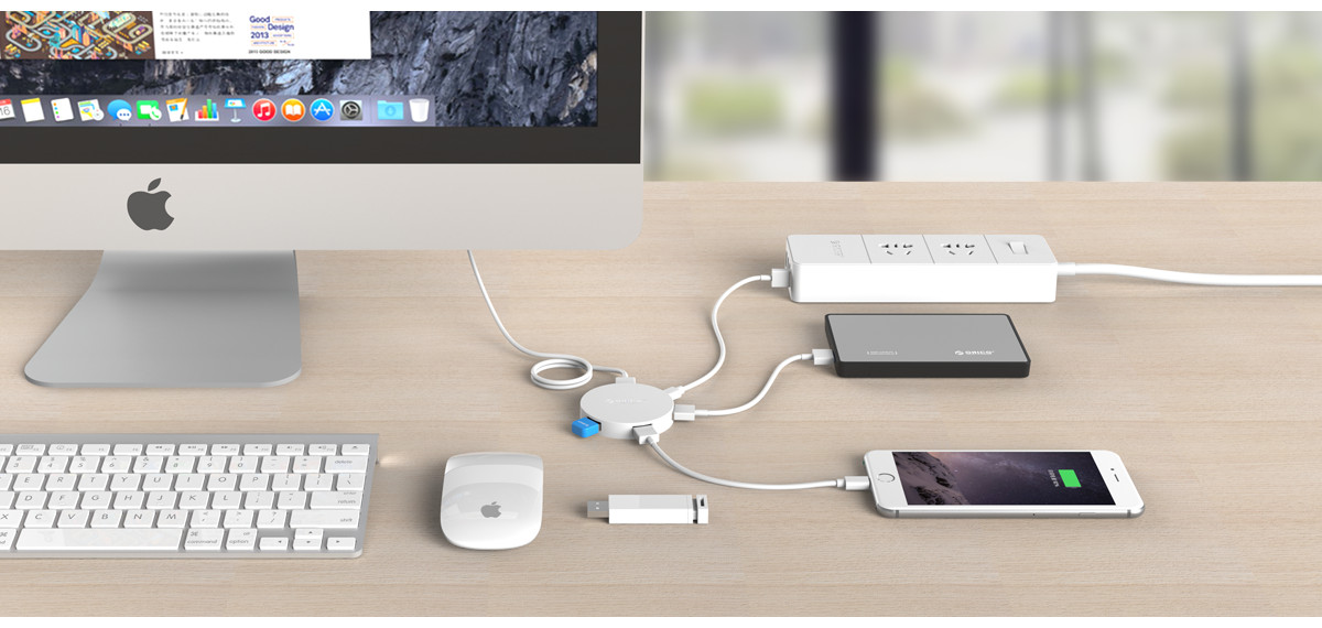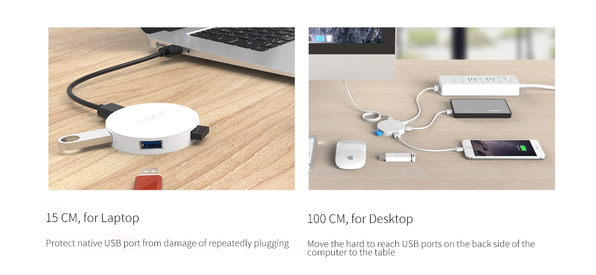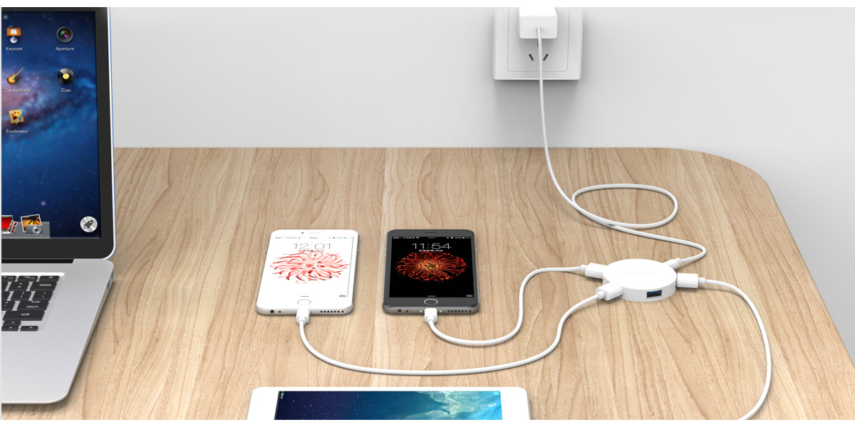 4 Port USB3.0 Circular HUB with 2 Data Cables
