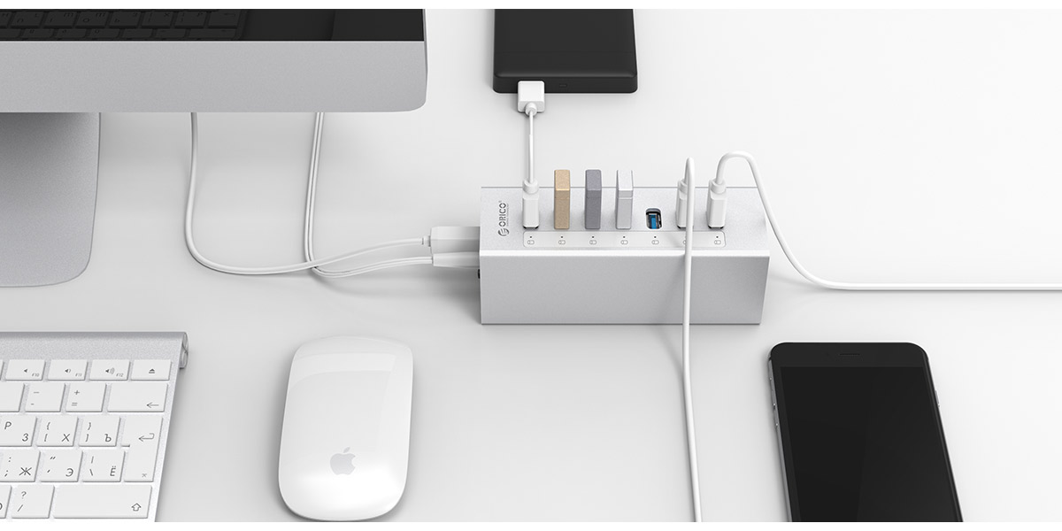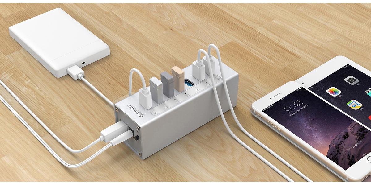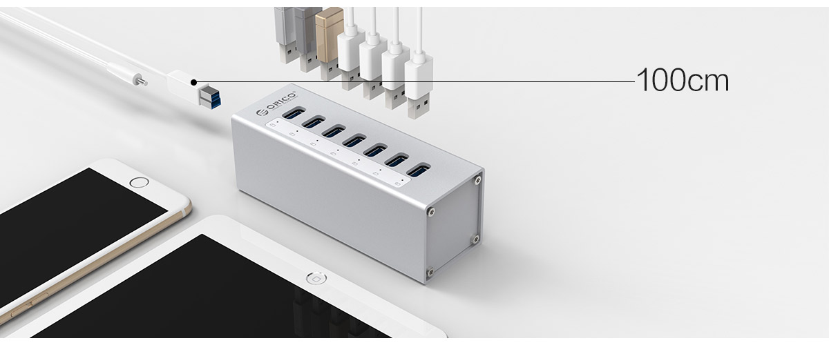 7-port USB3.0 hub meets your needs of ports while you enjoy the convenience of Ultrabook and tablet, easy to carry plus enough interfaces, moreover protects valuable original PC port to be your almighty assistant of desktop.
