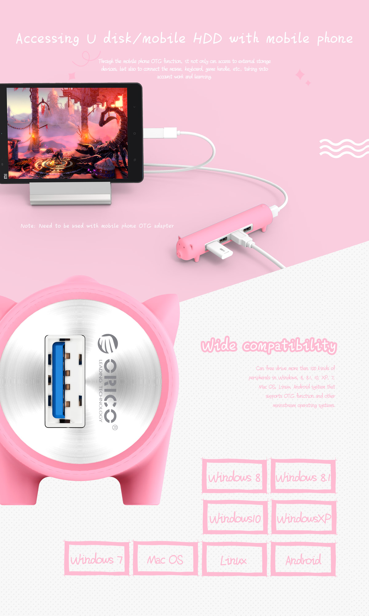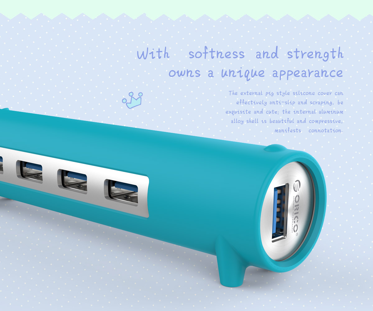 ORICO Aluminium Alloy 4 Port USB3.0 Pet-shape HUB with Silicone Cover