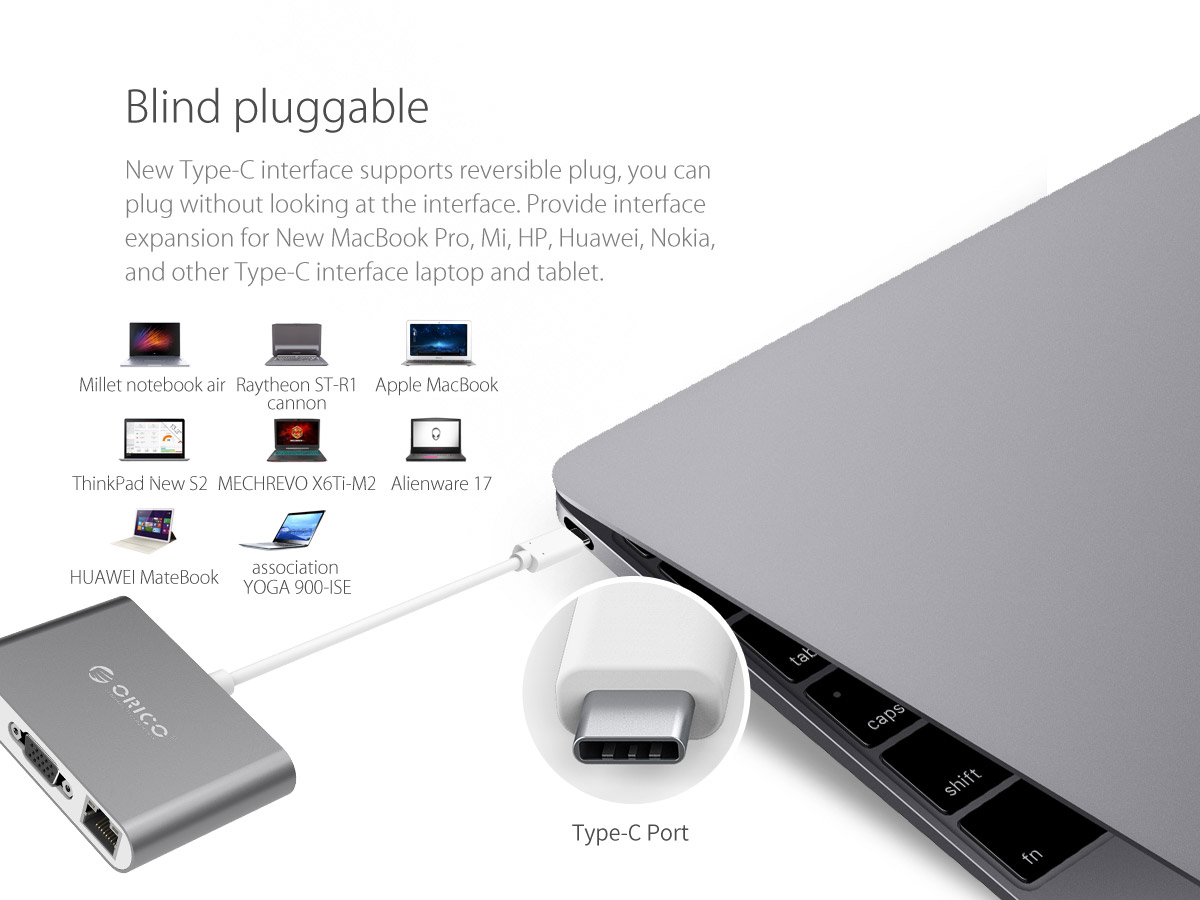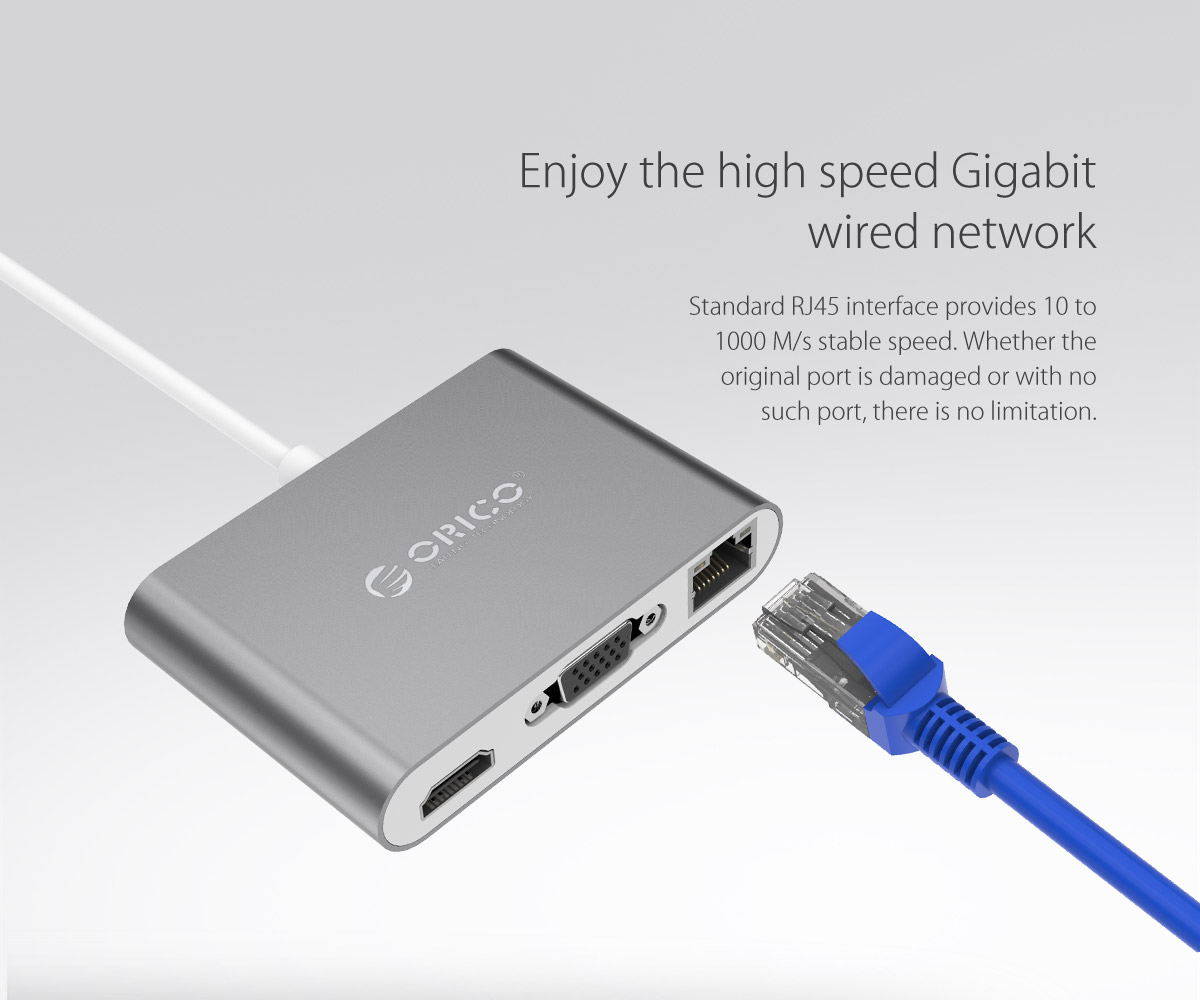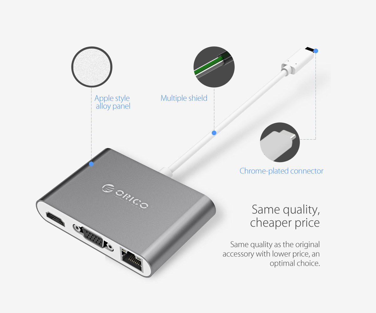 Aluminum Alloy Type-C to VGA / HDMI / RJ45 / Type-C PD / Type-A Adapter