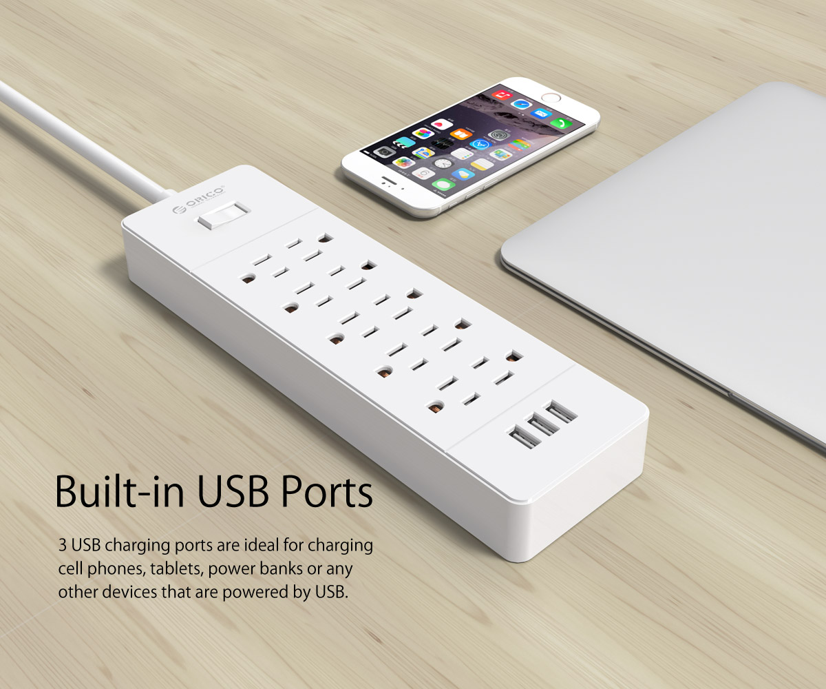 10 AC Outlet Surge Protector with 3 USB Charging Port