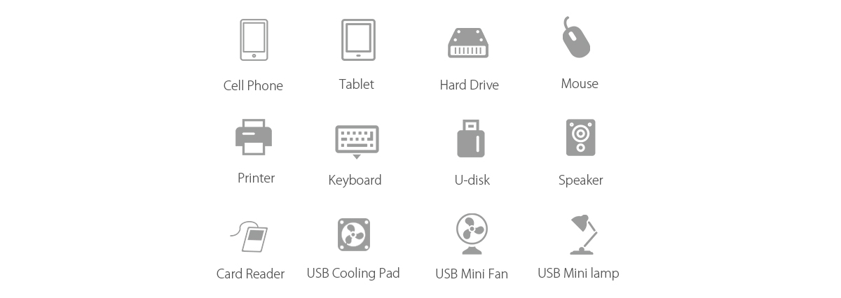 Work with smart phones, U-disks, hard drives, card readers and other digital devices, bringing much more convenience.