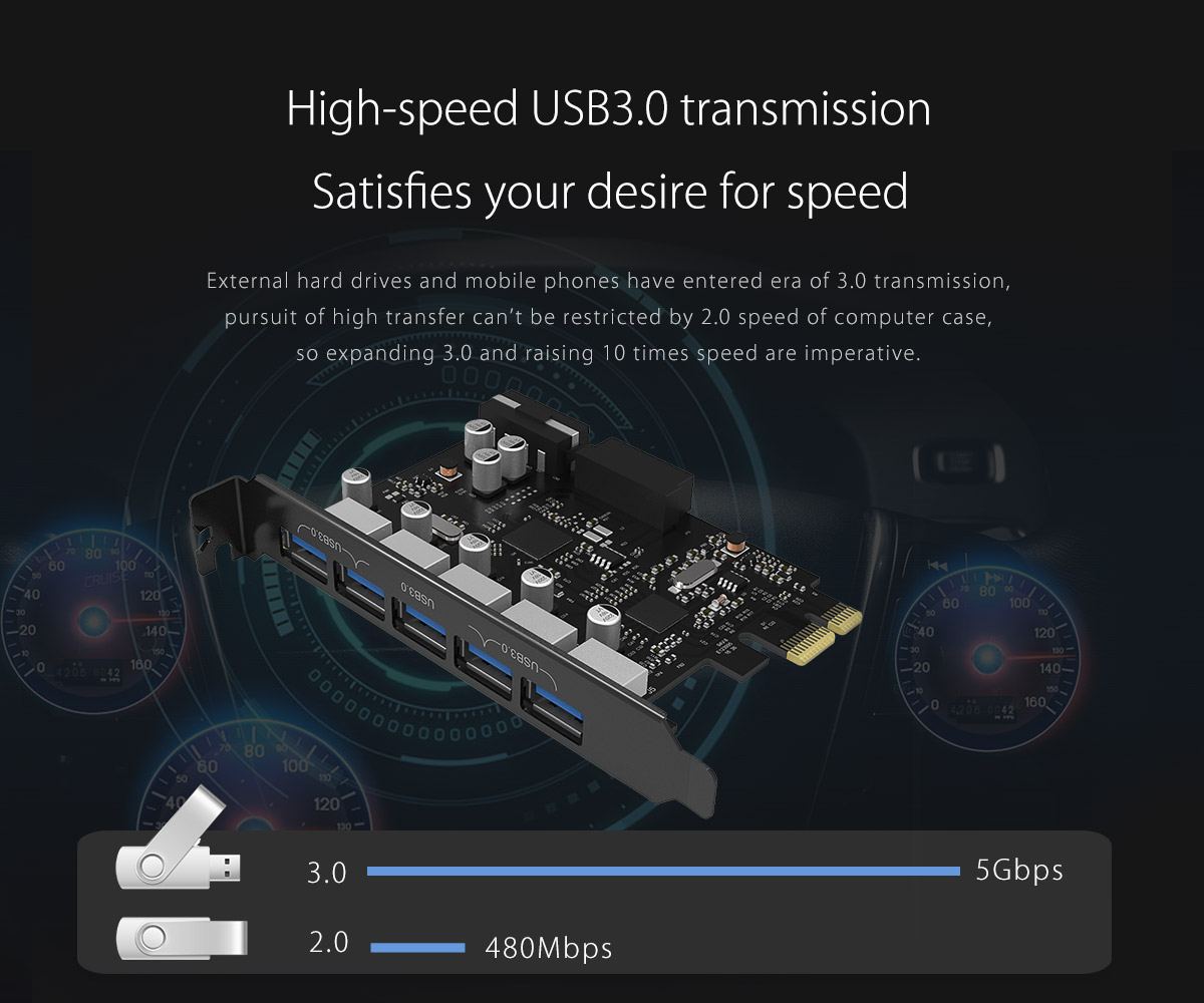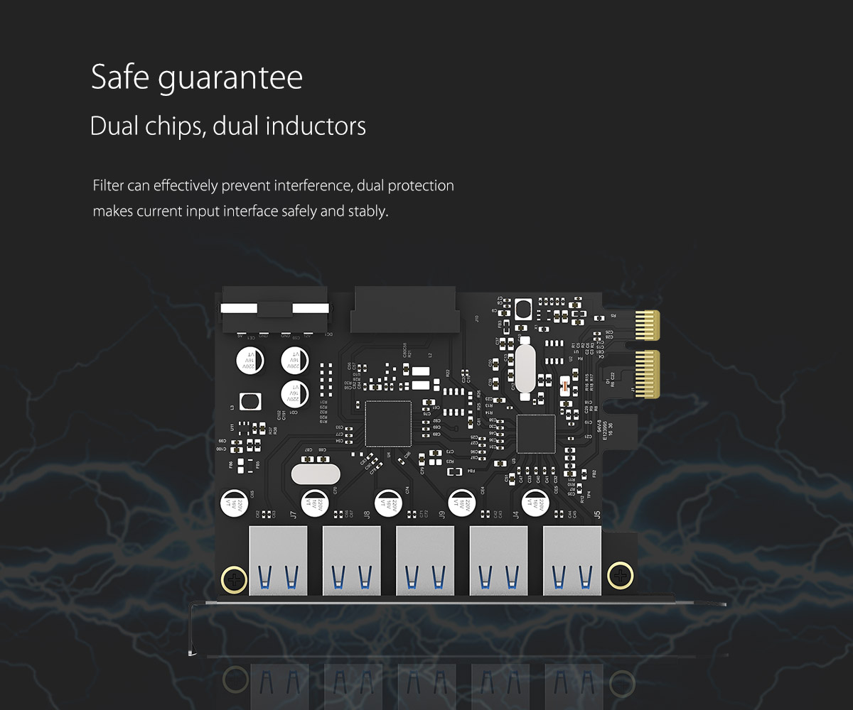 ORICO 5 Port USB3.0 PCI-E Expansion Card with Dual Chip
