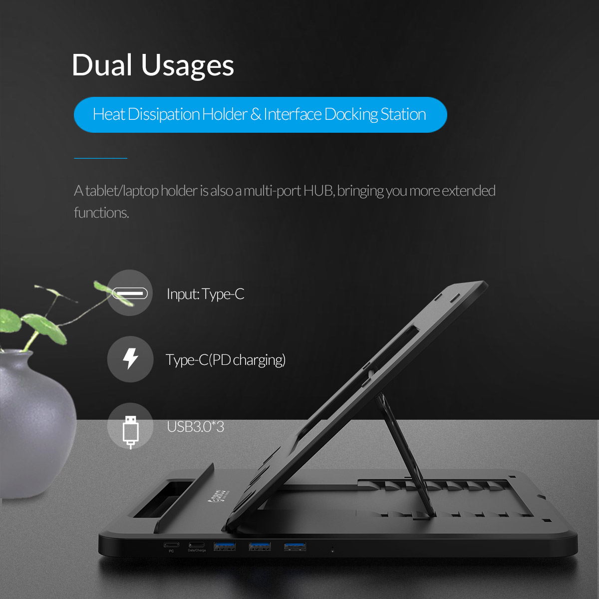 Type-Cto Type-C(PD/DATA)/USB3.0 Type-A*3 Docking Station with Holder