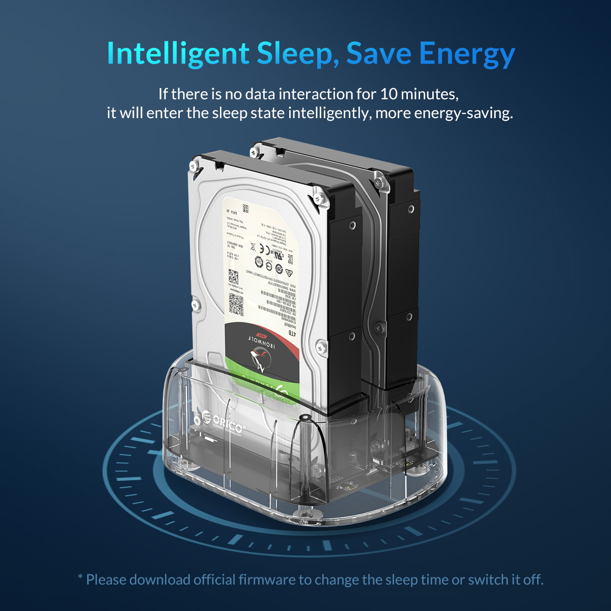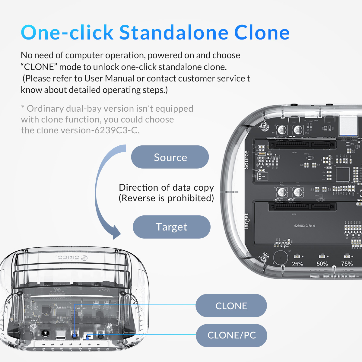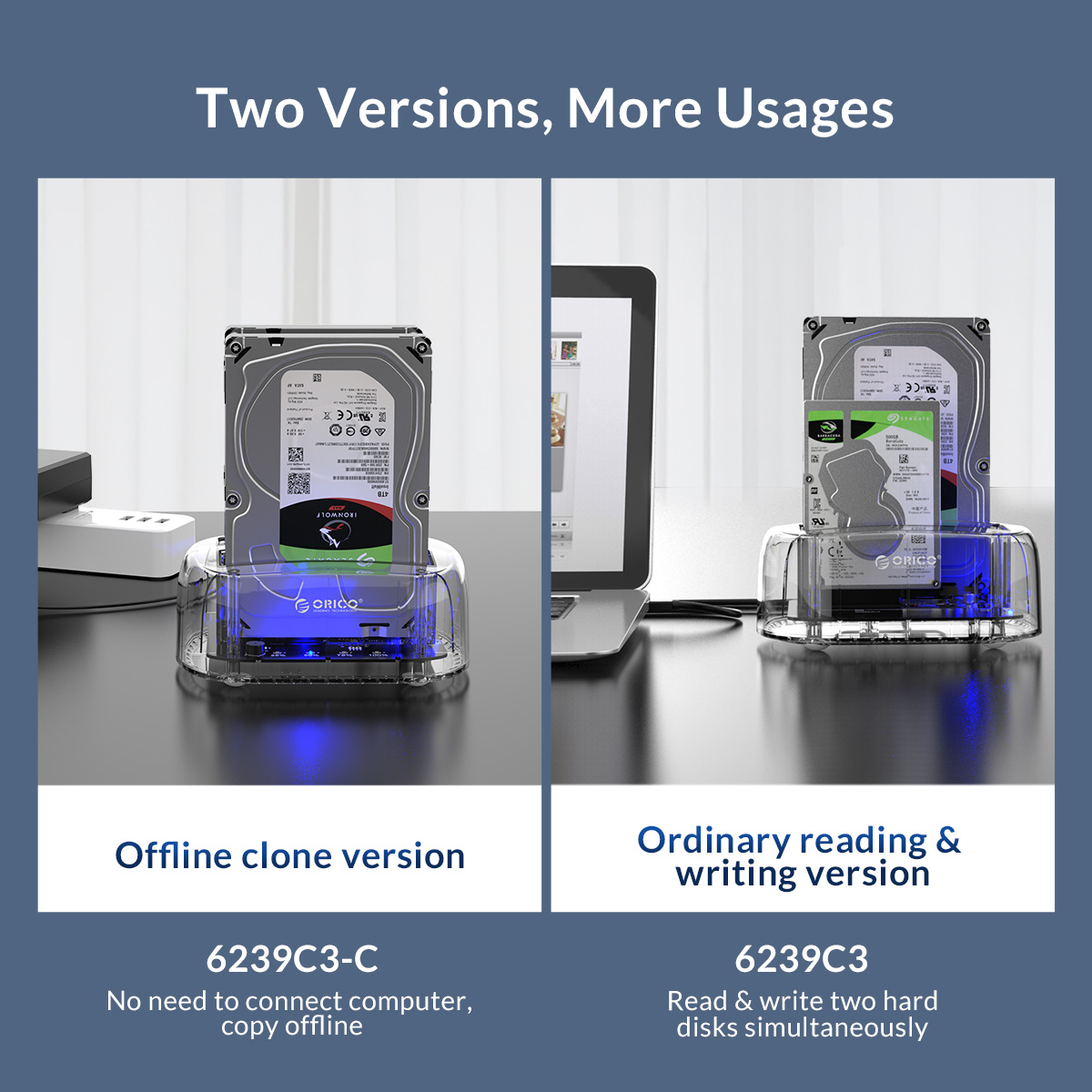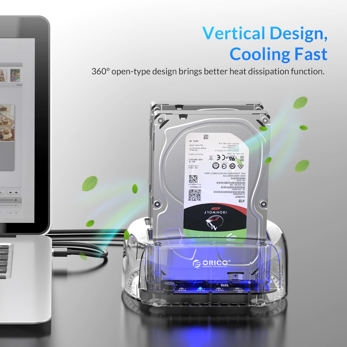 2.5/3.5inch 2 Bay Transparent Type-C Hard Drive Dock with Offline Clone Function