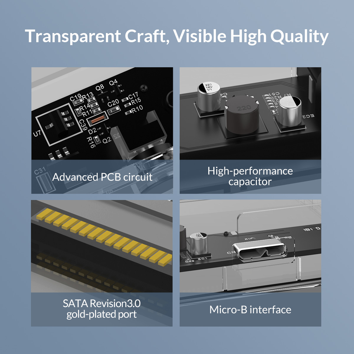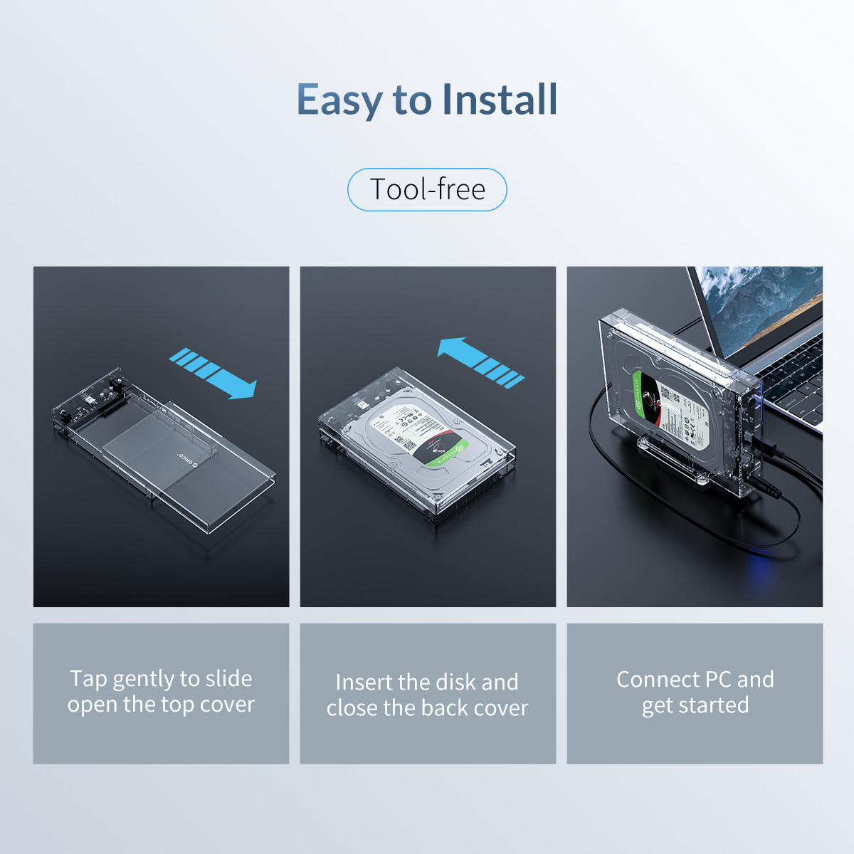 Transparent Series 3.5 inch USB3.0 Hard Drive Enclosure with Holder