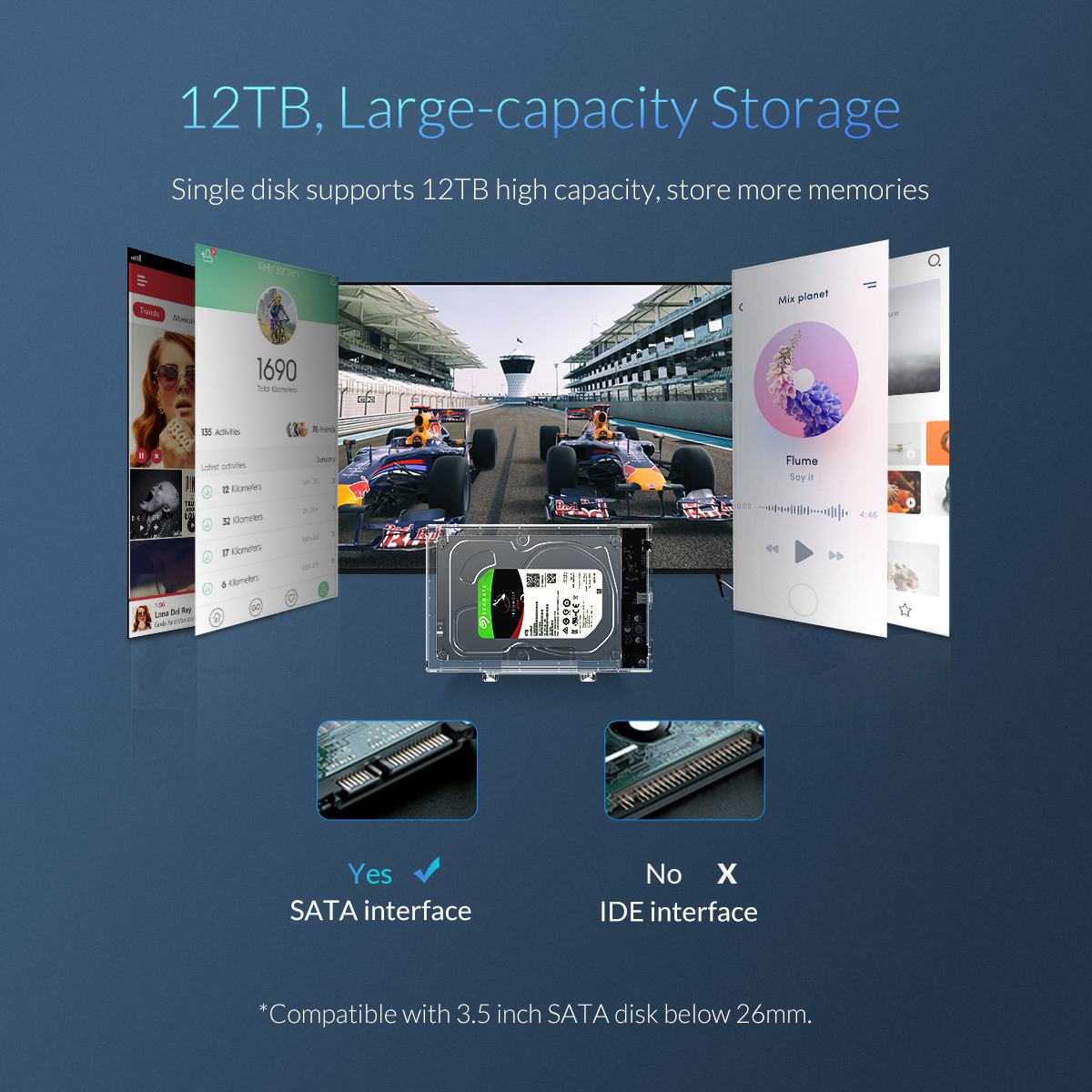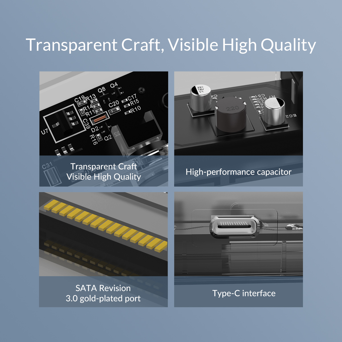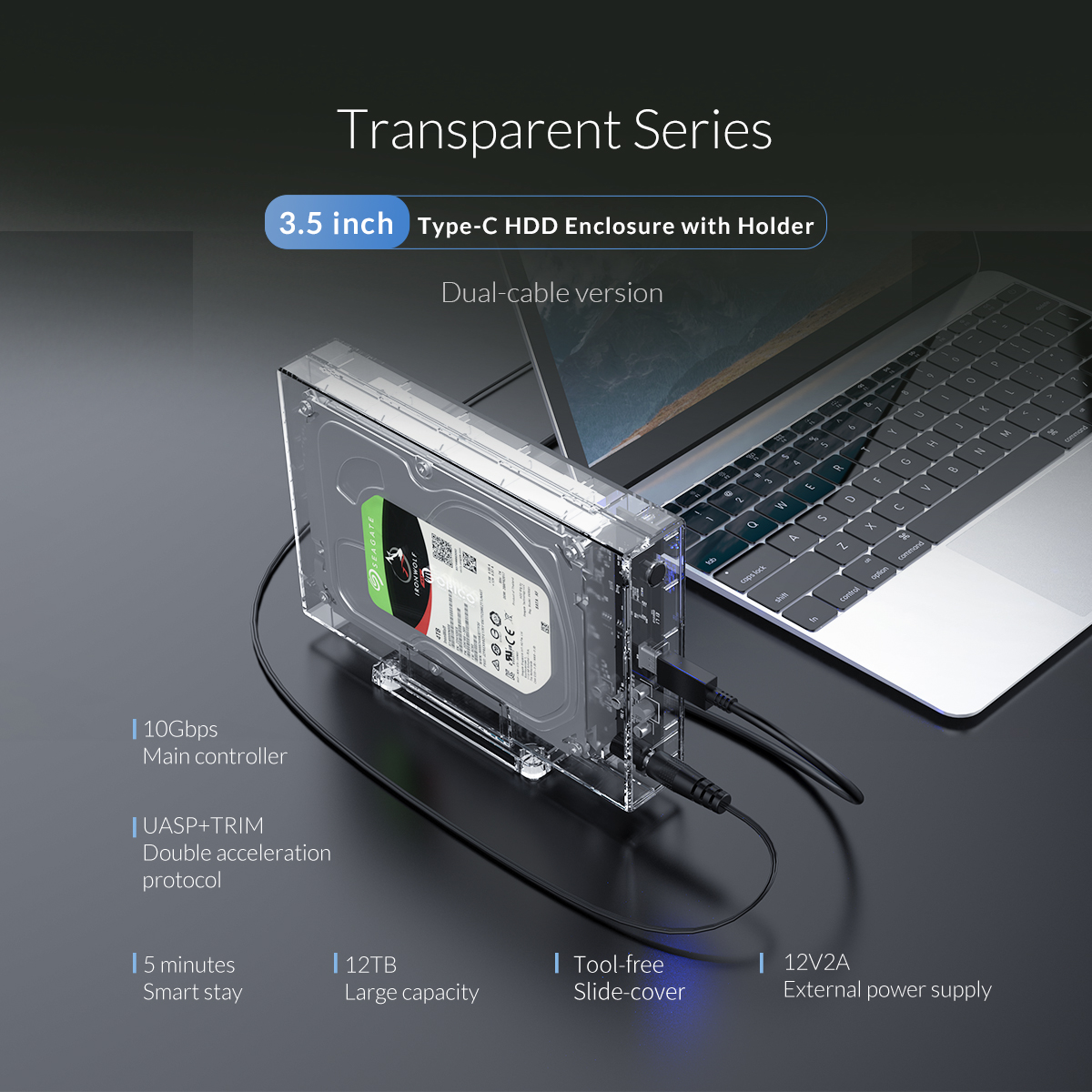 Transparent Series 3.5 inch Type-C Hard Drive Enclosure with Holder