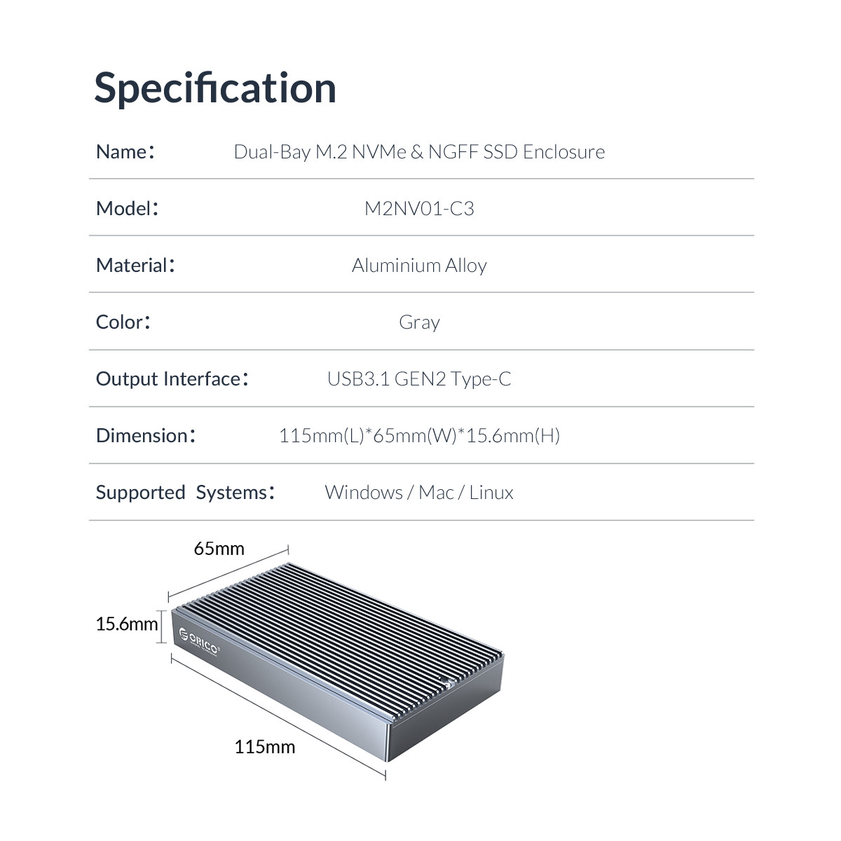 Dual-Slot M.2 NVMe & NGFF SSD Enclosure