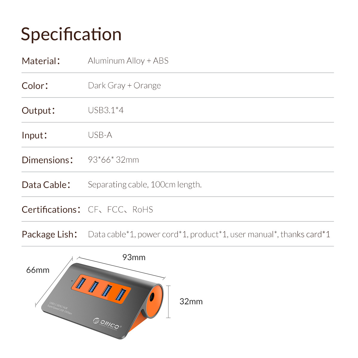 4-port USB3.1 Gen2 high-speed hub, 10Gbps transmission rate