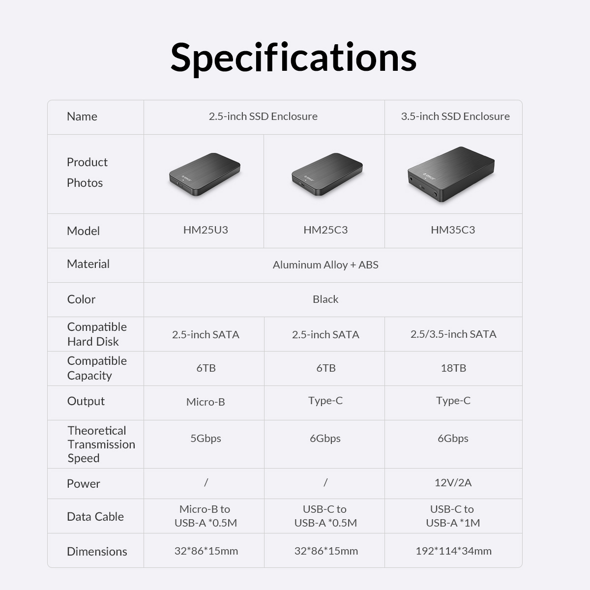 ORICO-3.5 inch USB3.1 Gen1 Type-C Hard Drive Enclosure