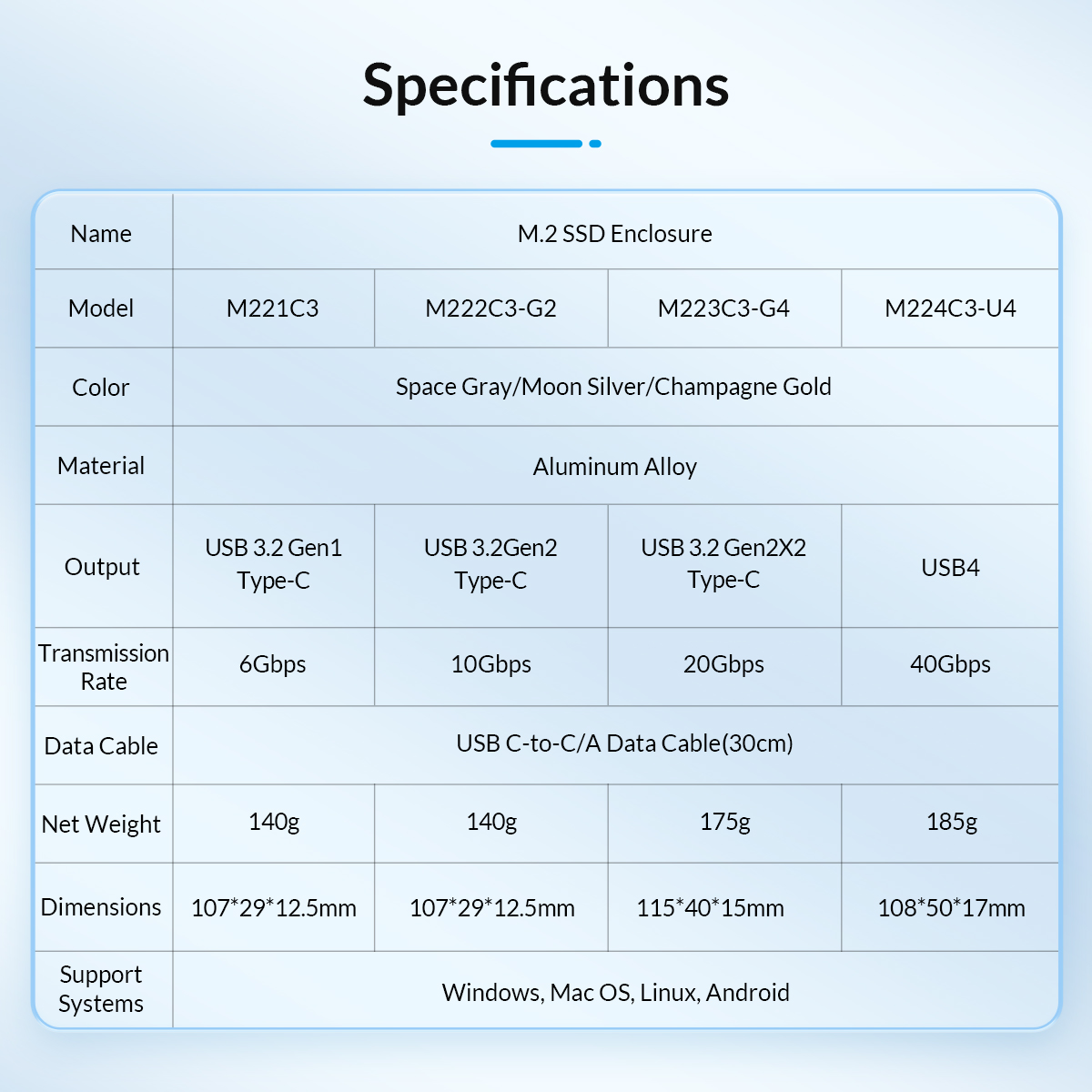 ORICO USB3.1 Gen2 Type-C 10Gbps M.2 NVMe SSD Enclosure