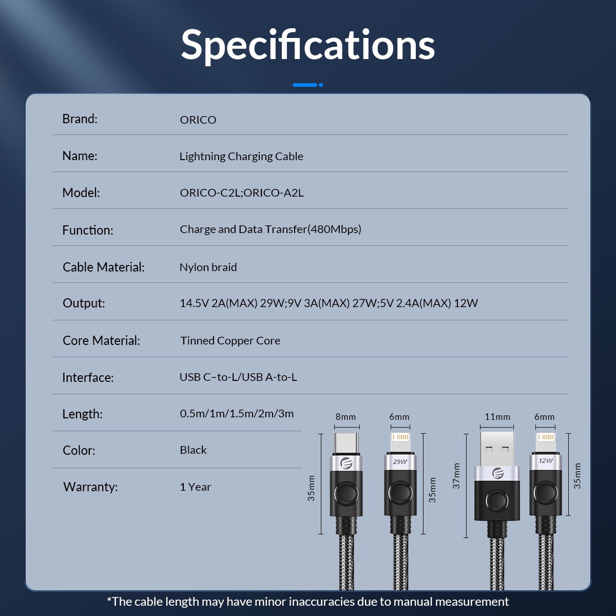 ORICO Type-C to Lightning Fast Charge & Data Cable