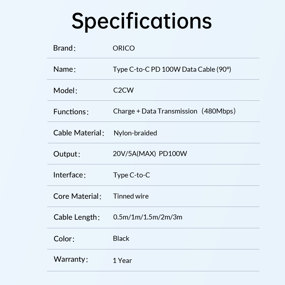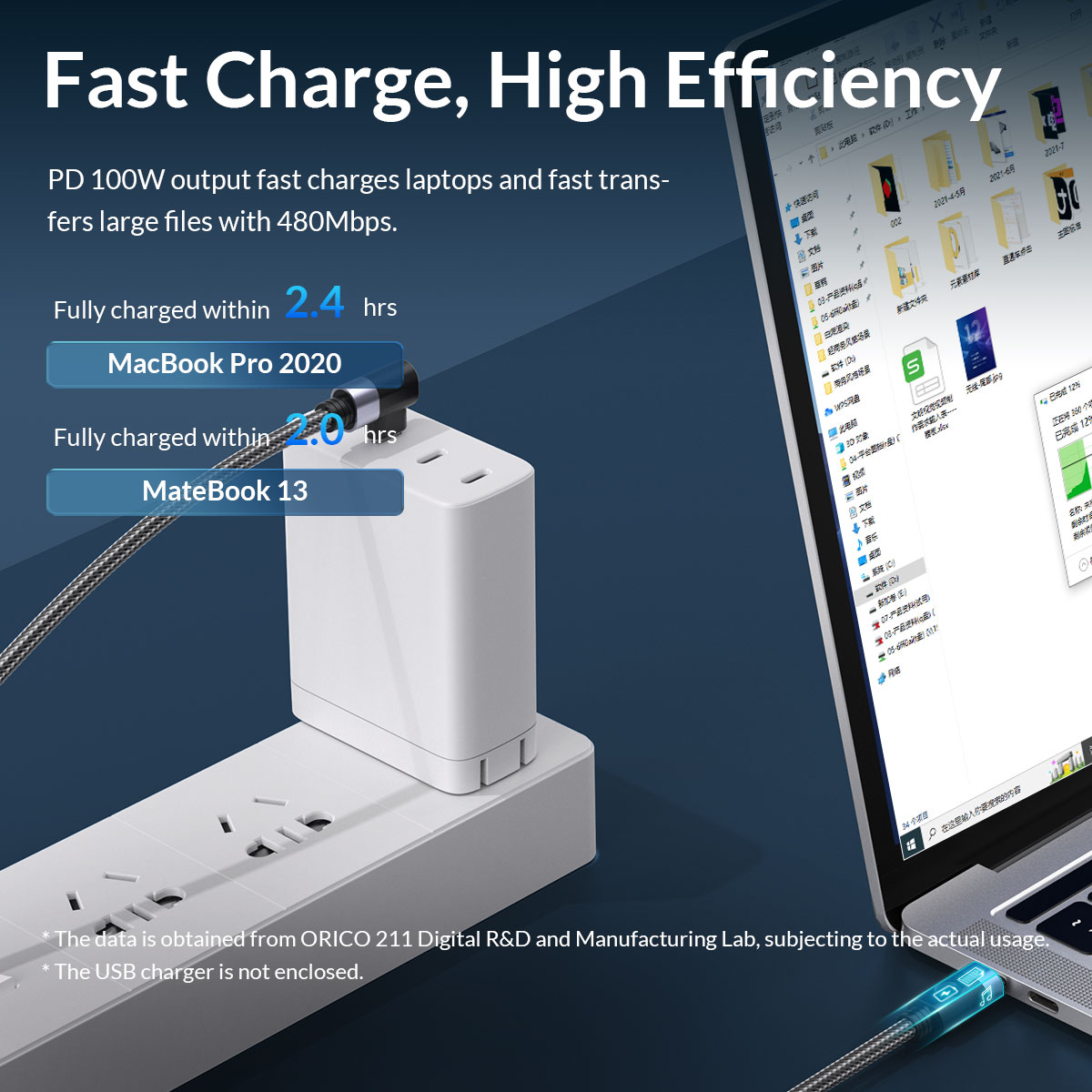 ORICO Type-C to Type-C Laptop PD 100W Fast Charge & Data Cable