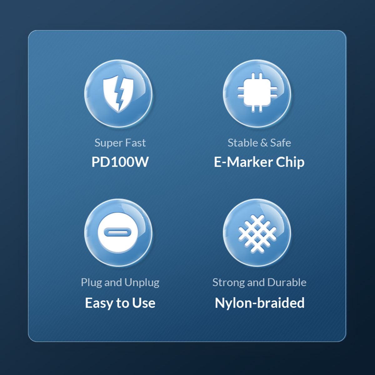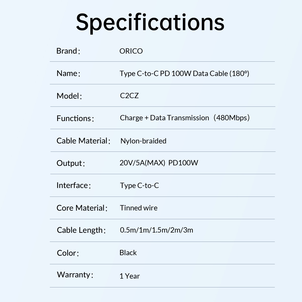 ORICO Type-C to Type-C Laptop PD 100W Fast Charge & Data Cable