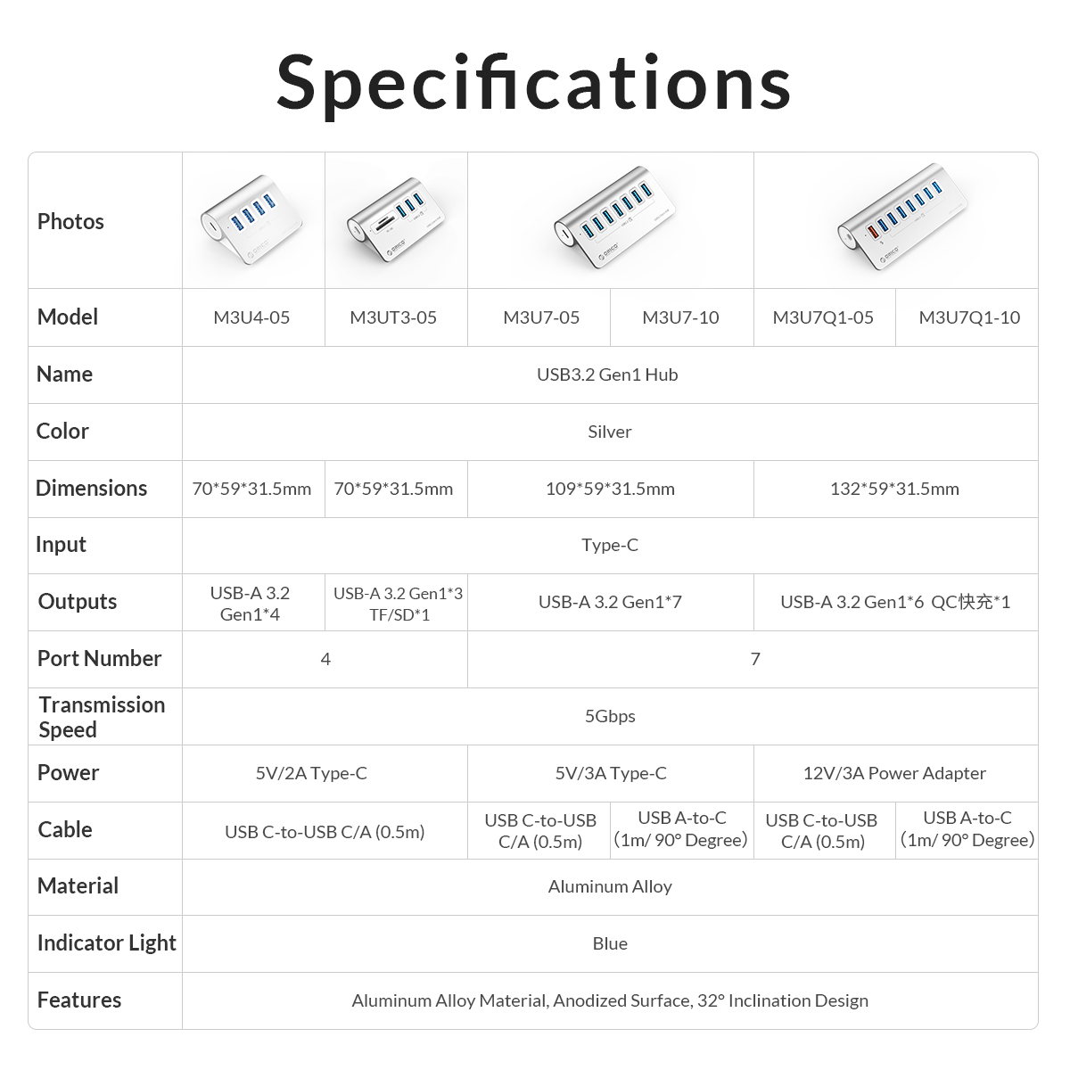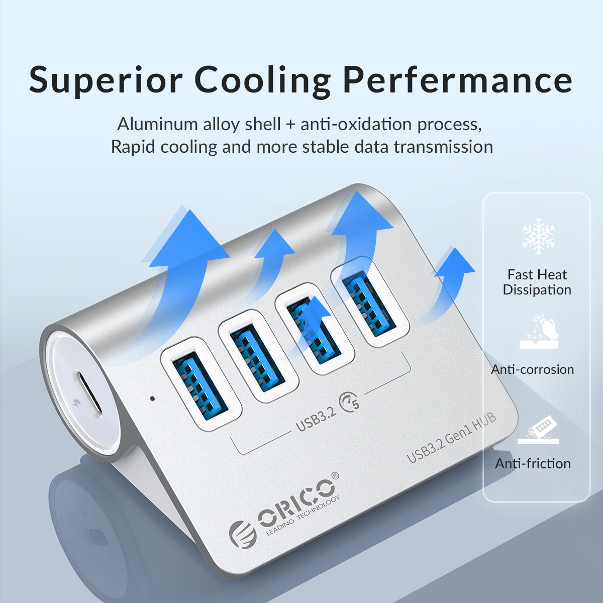 Orico Aluminum Alloy 4-Port USB3.2 Gen 1 Type-A HUB