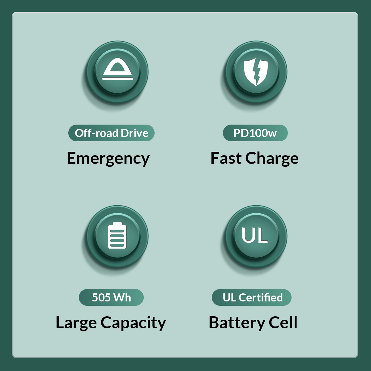 Battery Percentage,Input/Output Power, Status of Fan, LED Light, Delivery Port