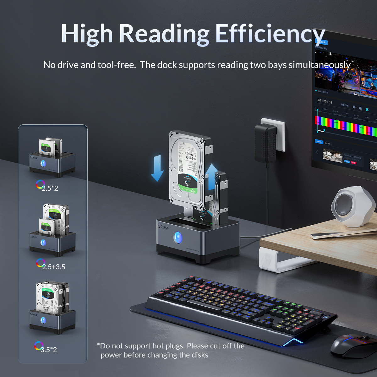 ORICO 2.5"/3.5" HDD/SSD 2 Bays Dock with Offline Clone Function