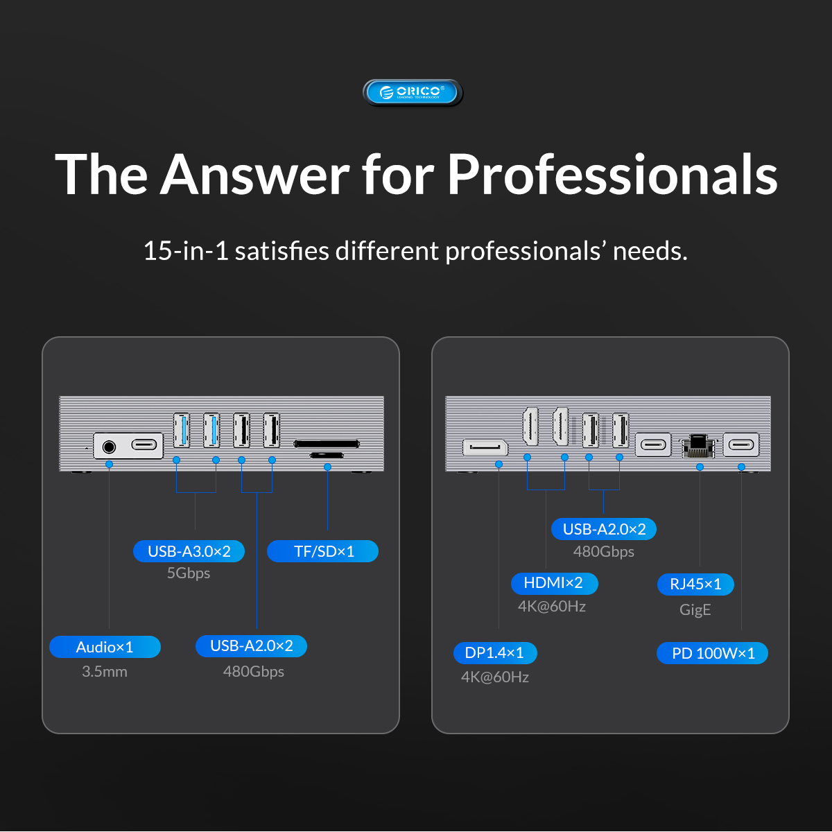 ORICO Type-C 15-in-1 10Gbps Multifunction Docking Station