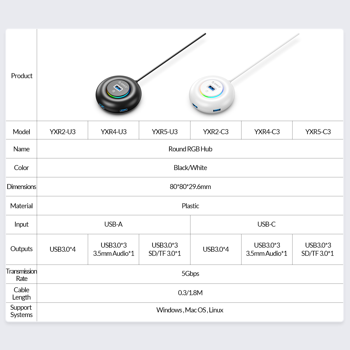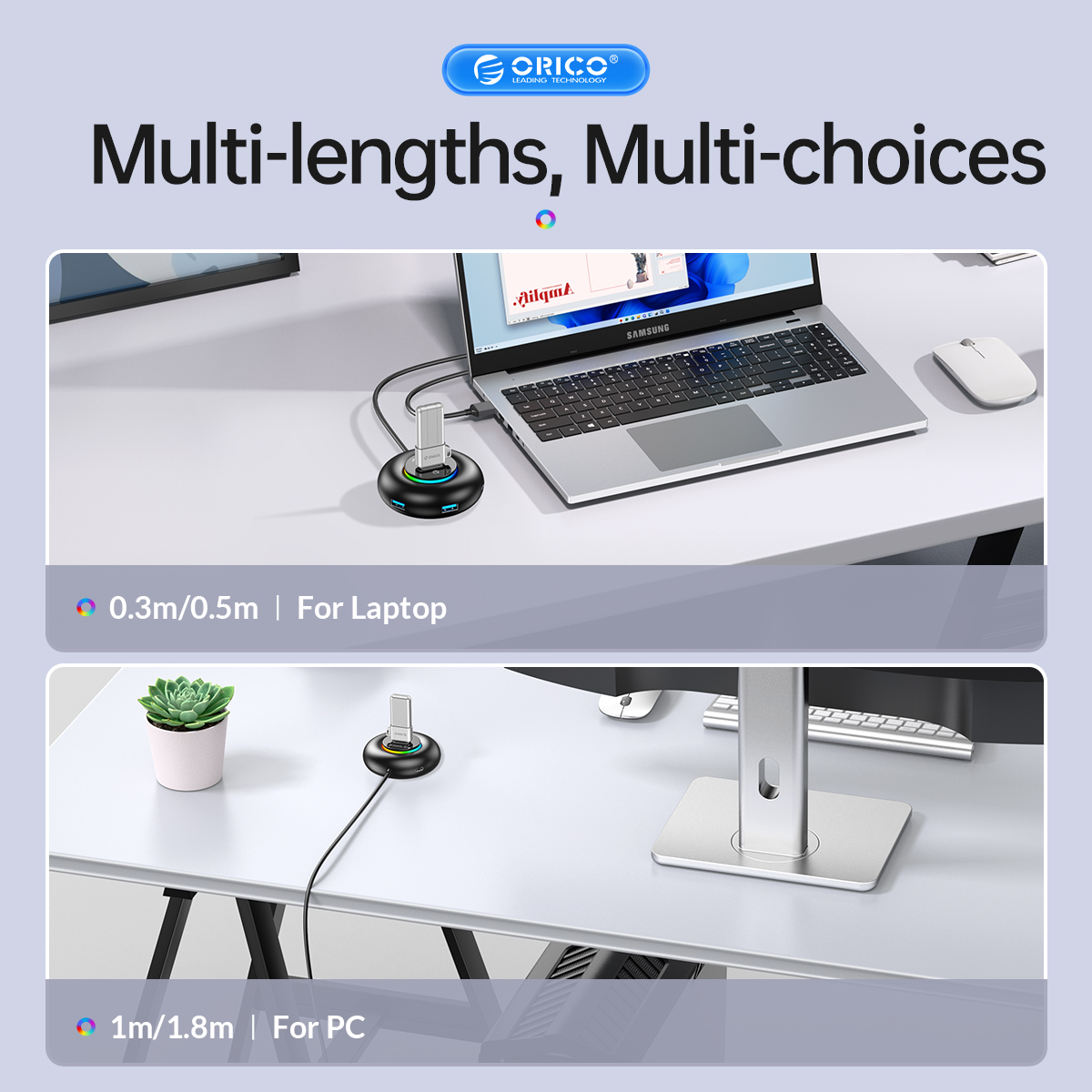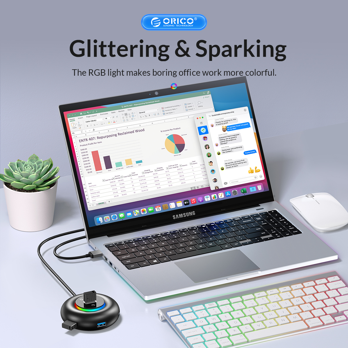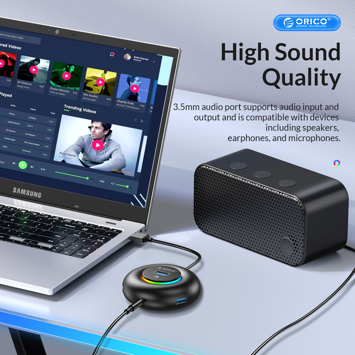 ORICO Desktop Type RGB 4-Port USB Hub with Audio/Mic Port