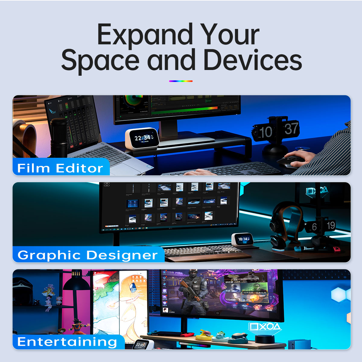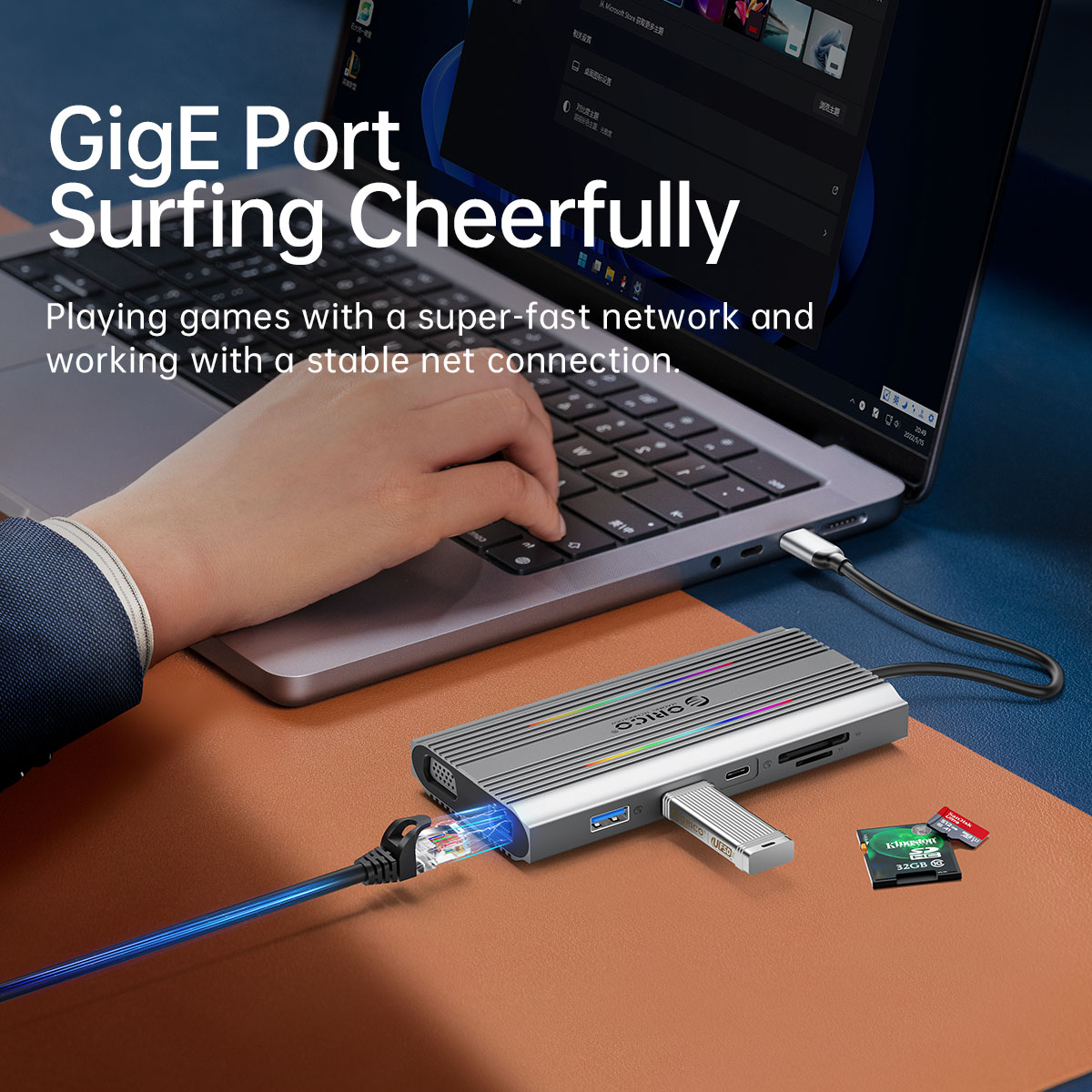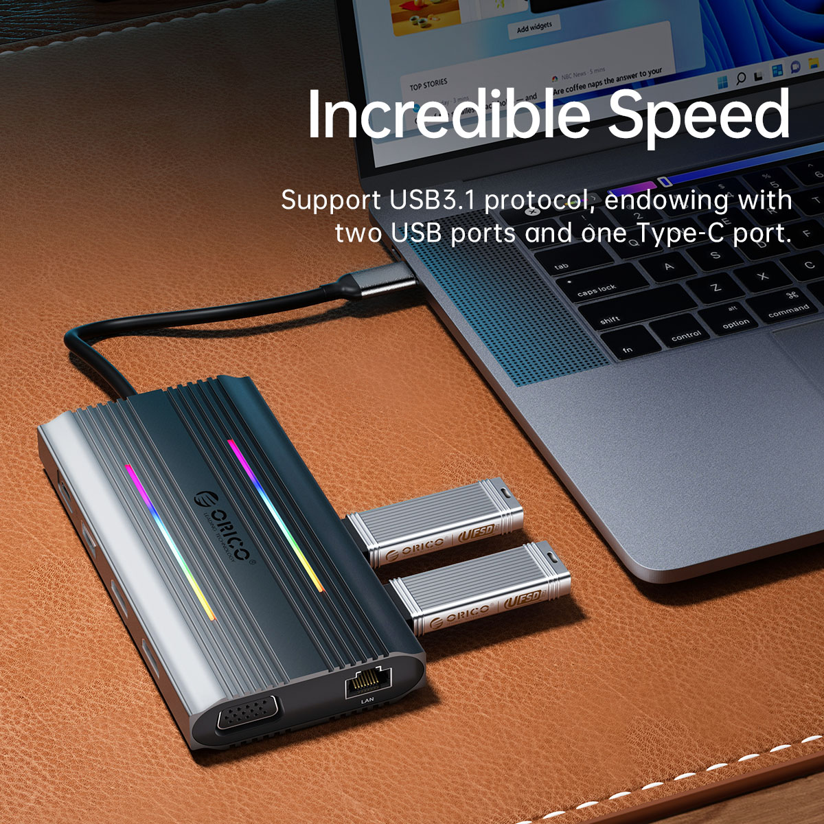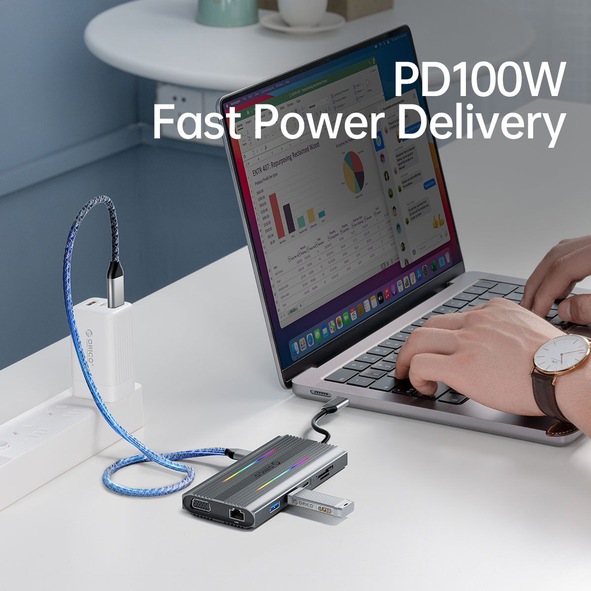 1.Type-C PD3.0 100W x 1 2.USB-A 3.1 5Gbps x 2 3.USB-A 2.0 480Mbps x 1 4.Type-C 3.1 5Gbps x 1 5.HDMI 2.0 4K/60Hz x 2 6.DP 1.4 4K/60Hz x 1 7.SD 3.0 5Gbps x 1 8.TF 3.0 (TF/SD) 5Gbps x 1 9.RJ45 10/100/1000M x 1 10.Audio (CTIA) x 1