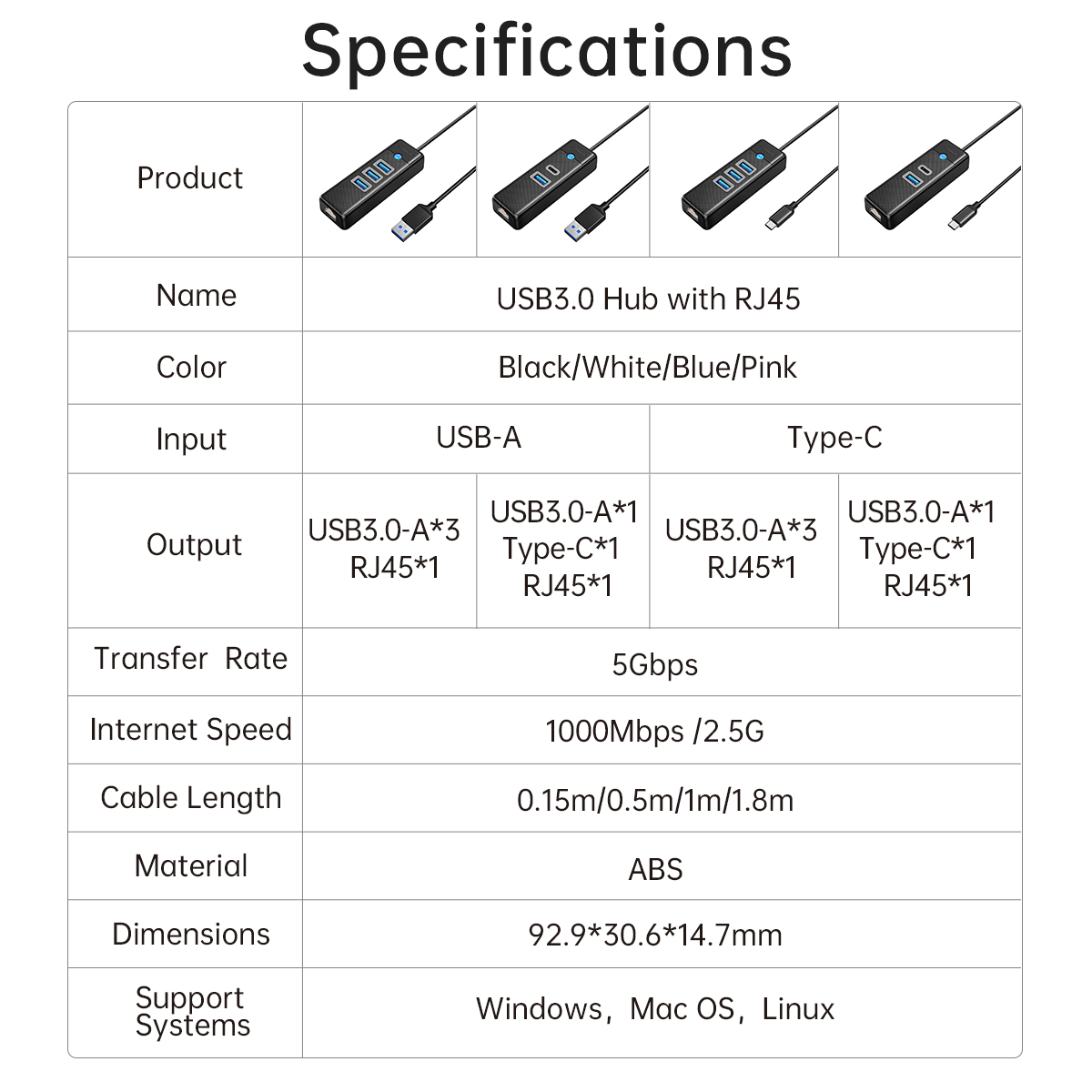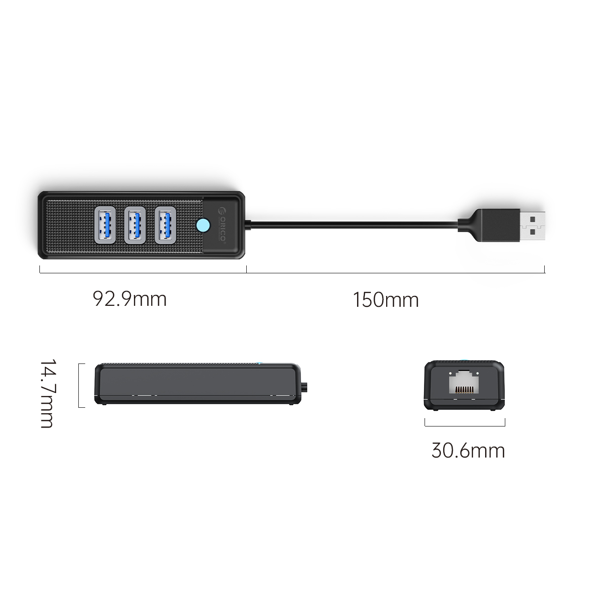 Orico 3-Port USB3.0 Hub with Gigabit Ethernet Port