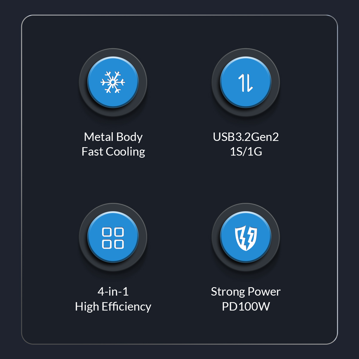USB3.2 Gen2 10Gbps Type-C*1 USB3.2 Gen2 10Gbps USB-A*2 PD 100W*1