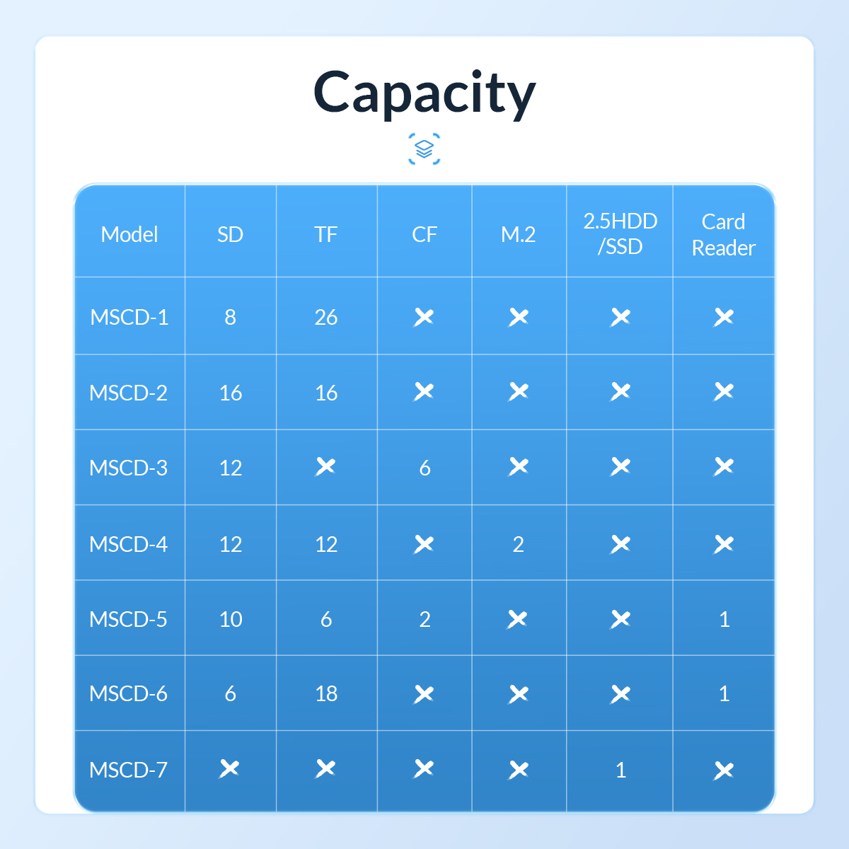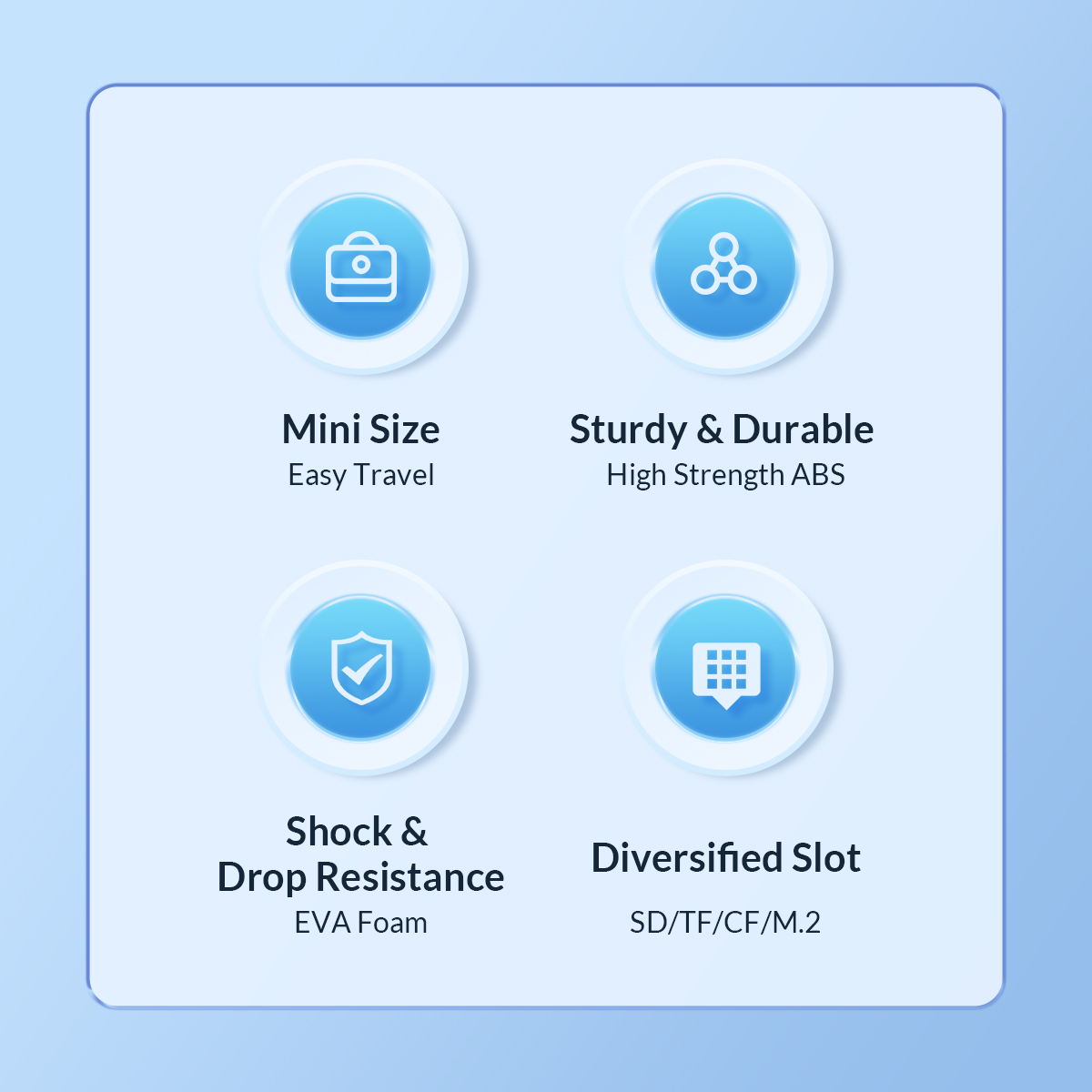 For storing M.2 SSD*2,TF*12/SD*12 memory cards