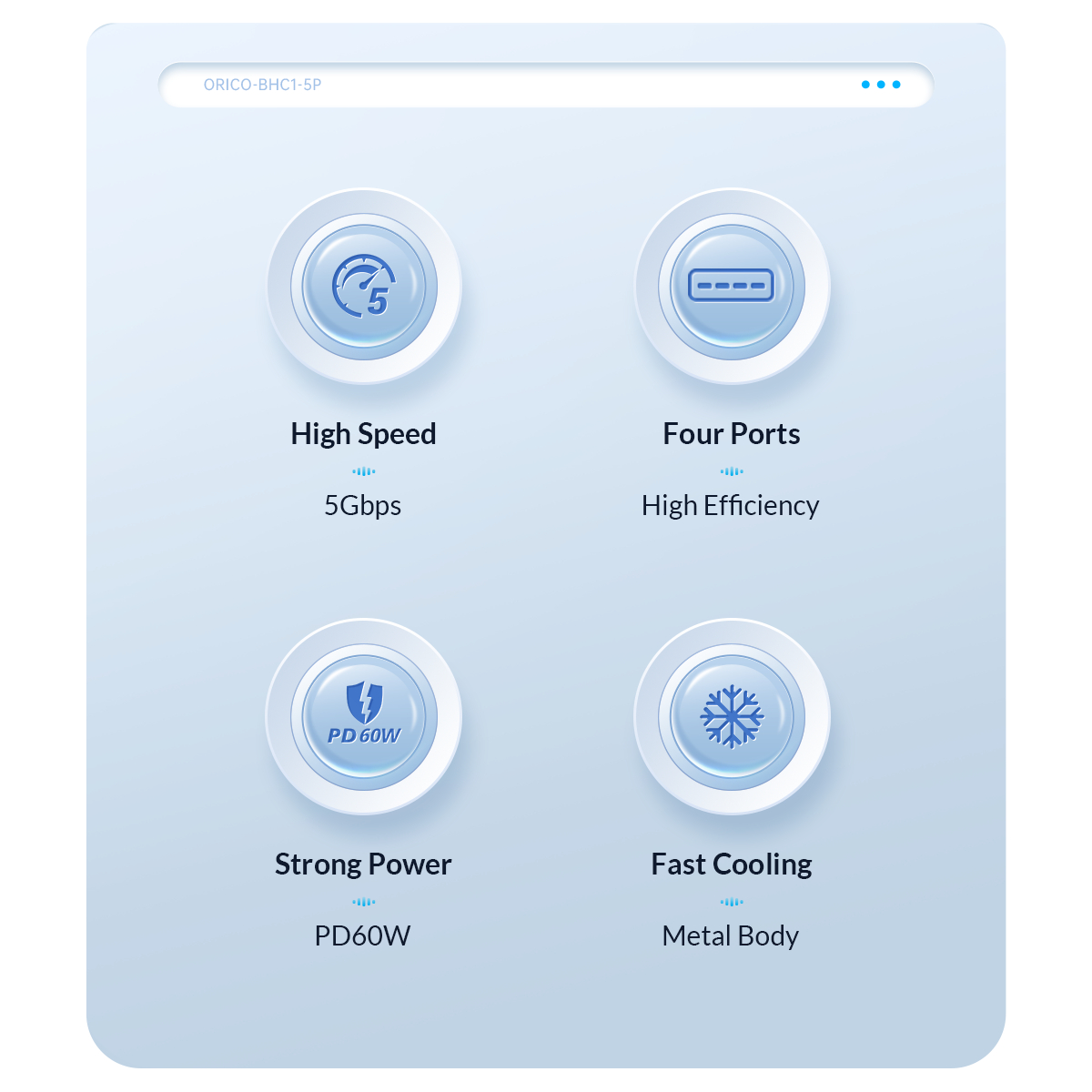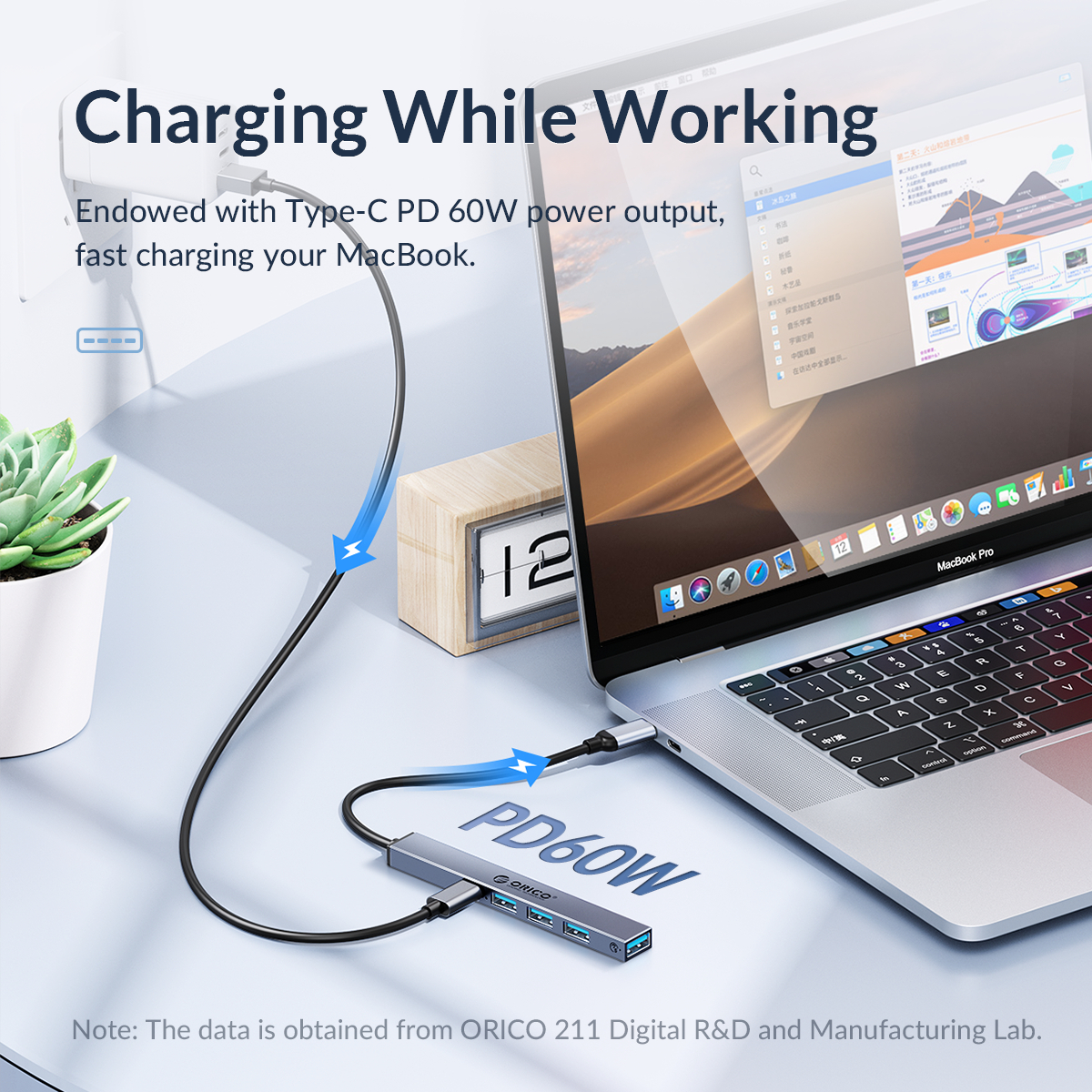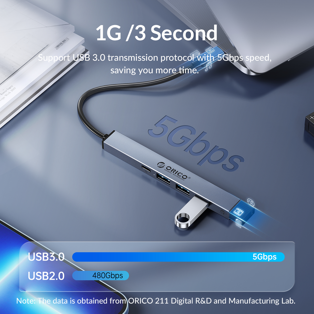 USB A 3.0×1:5Gbps, USB A 2.0×2:480Mbps, USB C PD 2.0×1:20V 3A 60W MAX, USB C 2.0×1:480Mbps, TF:480Mbps