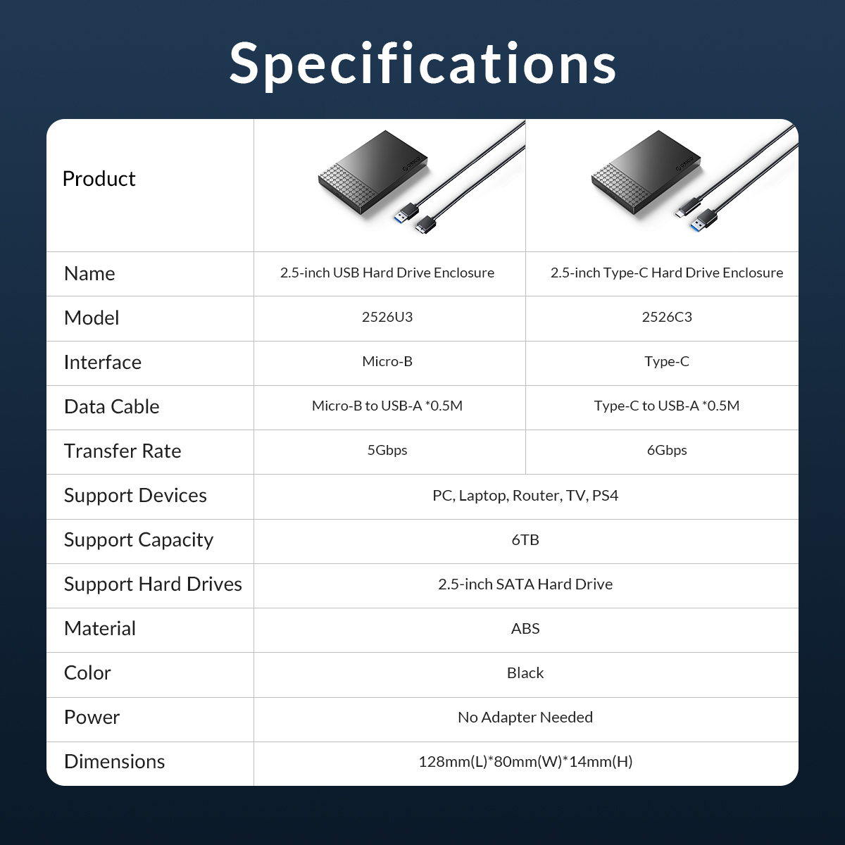 ORICO-2.5 inch USB3.0 USB-A TO C Hard Drive Enclosure