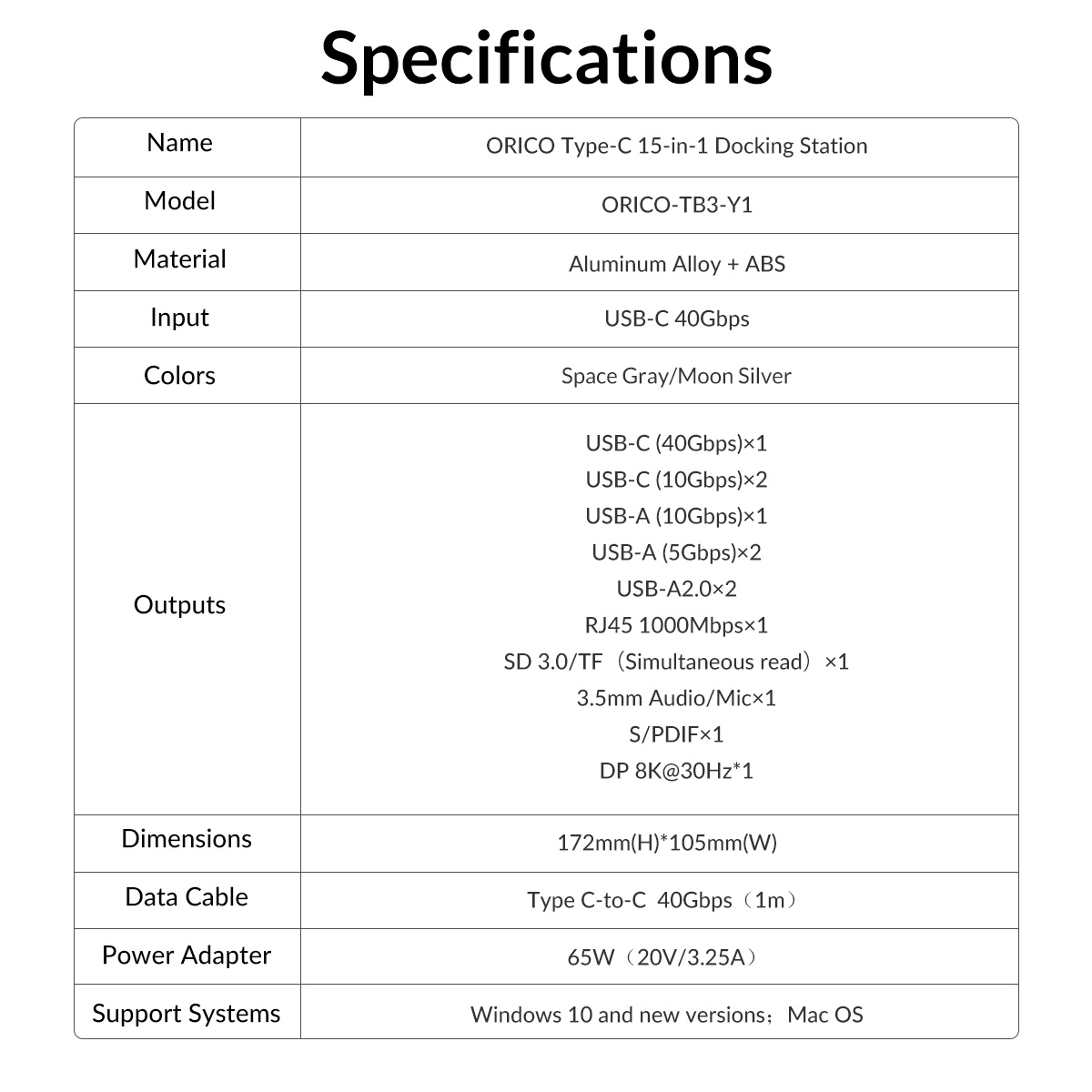 ORICO 15-in-1 40Gbps Multifunction Docking Station