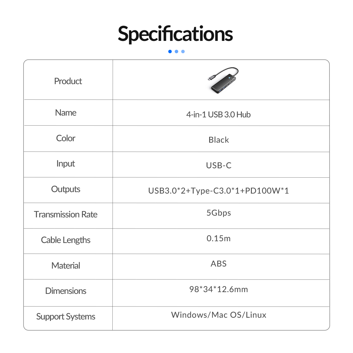 ORICO PW Series 4-Port USB3.0 Hub ORICO-PAPW2AC