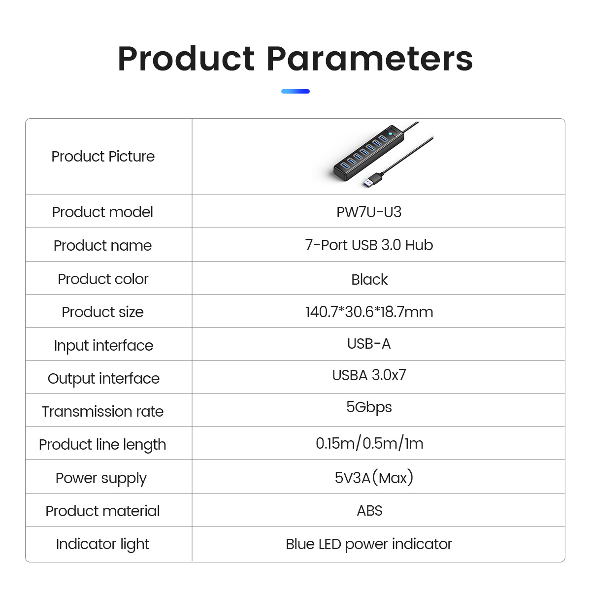 ORICO 7 Ports USB3.0 Hub PW7U